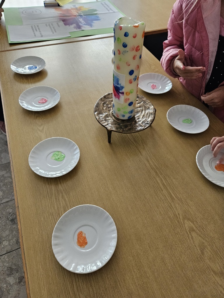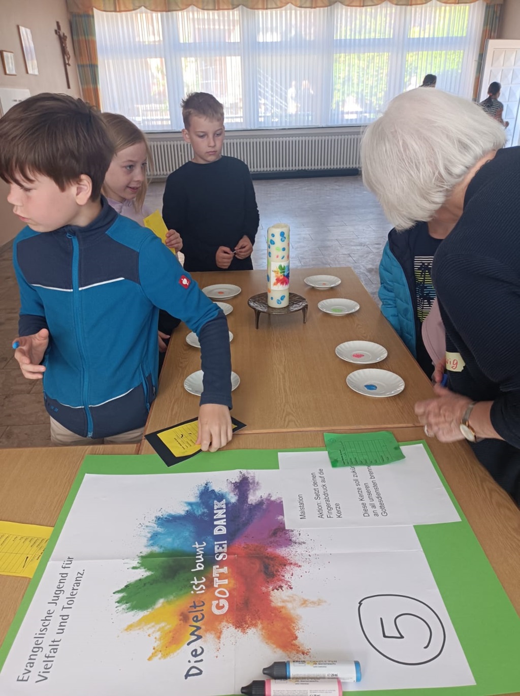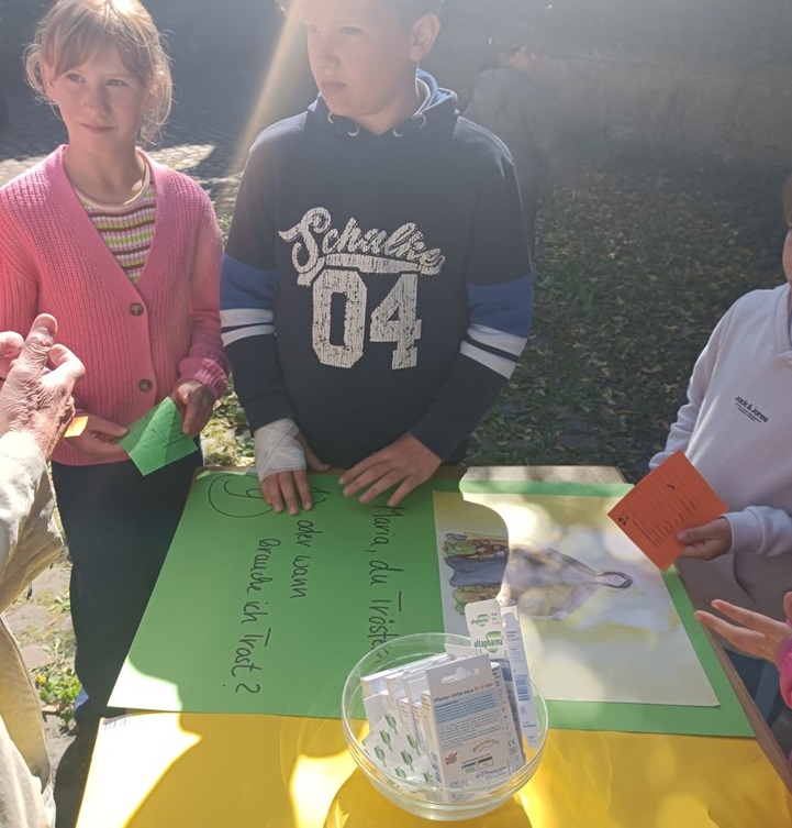 Am Freitag, den 16.5.2025, gestaltete die kath. Kirche, unter Anleitung von Barbara Beine, in Kooperation mit der katholischen Grundschule einen Projekttag zum Thema "Die Welt ist bunt - Gott sei Dank".