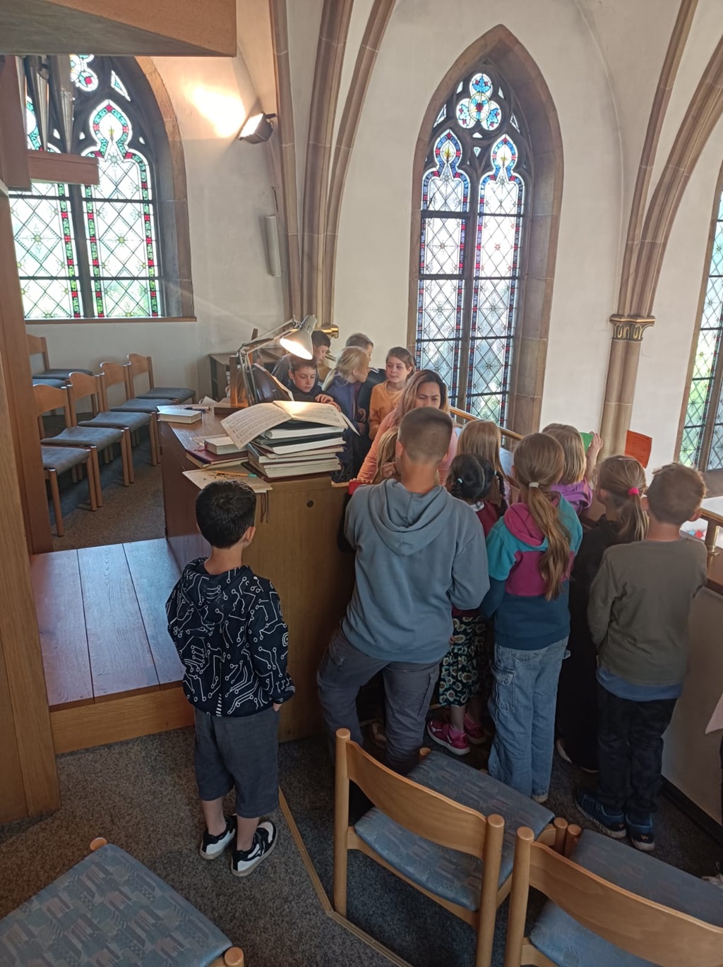 Ein Highlight war auch, einmal oben auf den Orgelboden zu gehen und die Orgel von Frau Yalda erklärt zu bekommen.