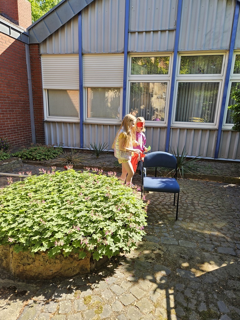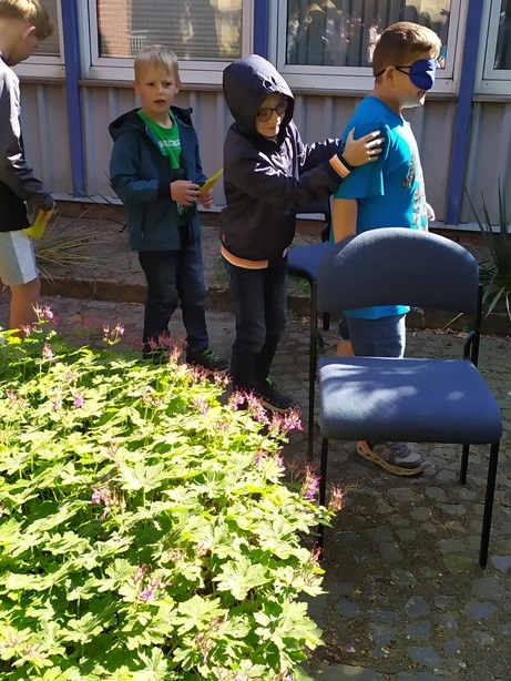 Die Kinder hatten unter anderem die Aufgabe, sich gegenseitig mit verbundenen Augen durch einen Parcours zu führen.