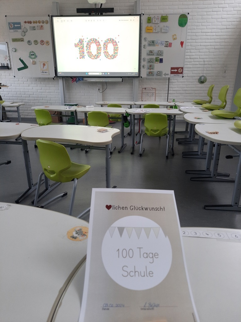 Kaum zu glauben, aber der Blick auf die Schultage-Zählmaschine bestätigt es: Am 09.02.2024 feiert die 1a bereits ihren 100. Schultag.