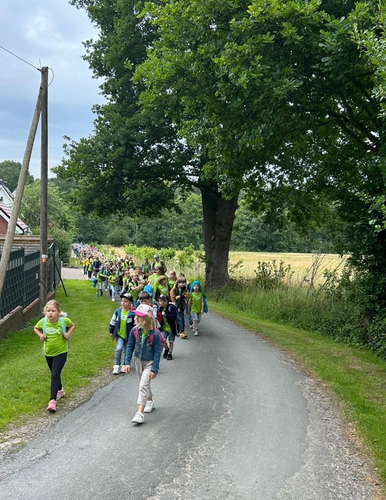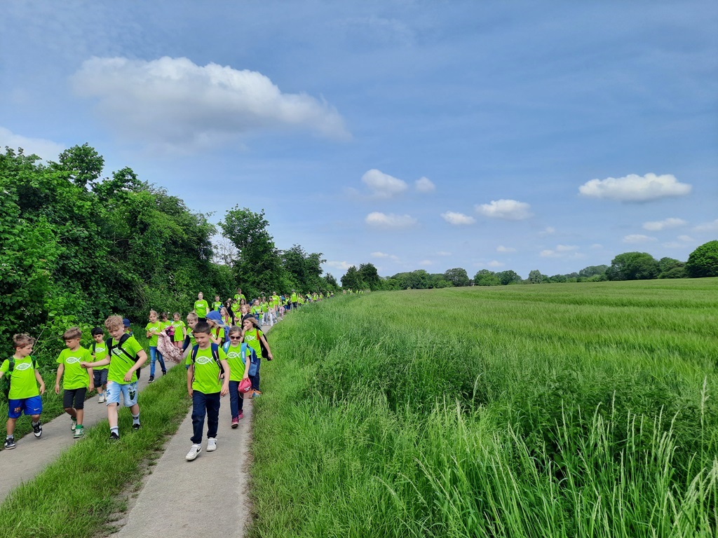Am 17.05.2024 stand bei strahlendem Sonnenschein der Wandertag nach Quendorf an. Grund war das Fußballturnier der Obergrafschafter Grundschulen, bei dem unsere Schule mit drei Mannschaften vertreten war.
