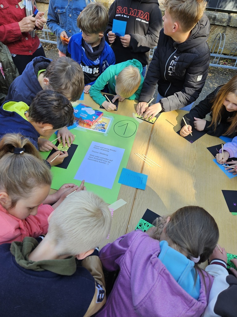 Die Kinder der vierten Klasse waren vom 21.-23.09.2022 auf Klassenfahrt im Josef-Cardijn-Haus in Listrup. Dort wurde gemeinsam gekocht, viel gespielt und gebastelt. Besonders aufregend war die Nachtwanderung, bei der die Kinder gemeinsam Hinweise entdecken und erspielen mussten, um das verloren gegangene Klassenmaskottchen „Zara“ wieder zu finden. Nach der erfolgreichen Suche war die Erleichterung groß und alle konnten beruhigt schlafen gehen.