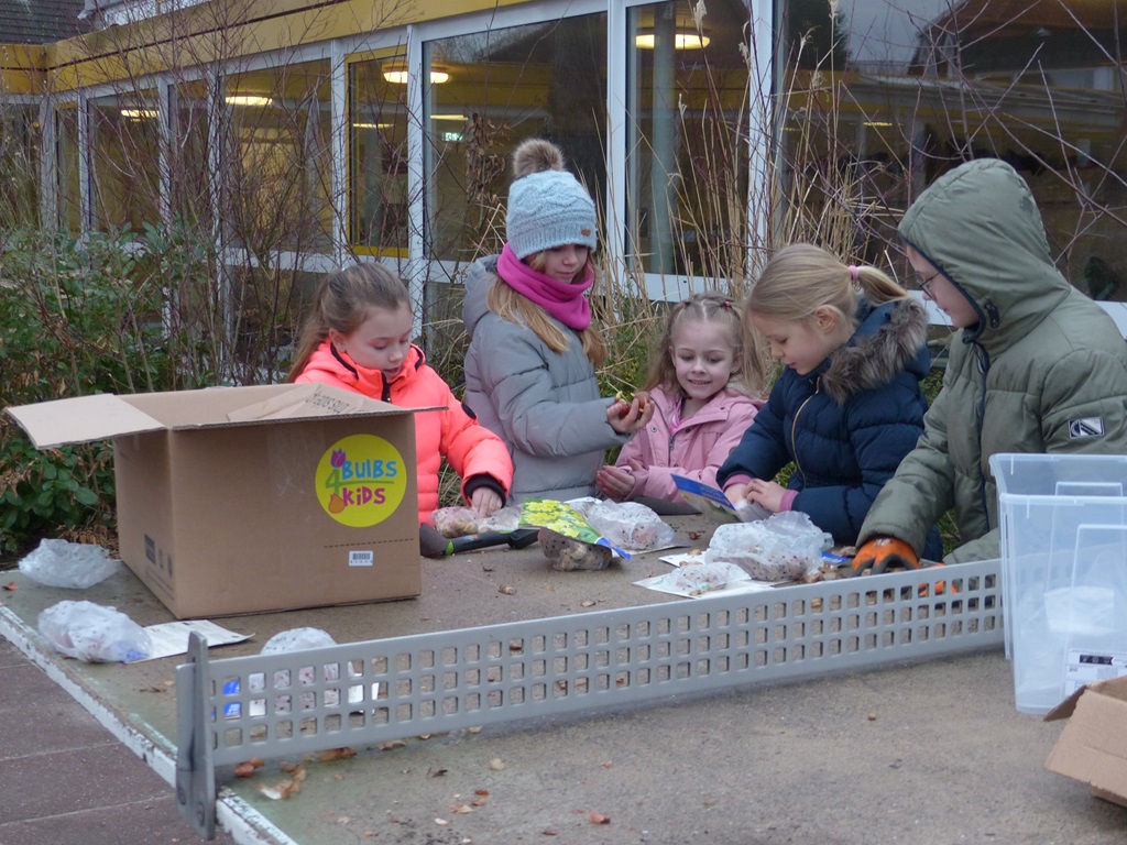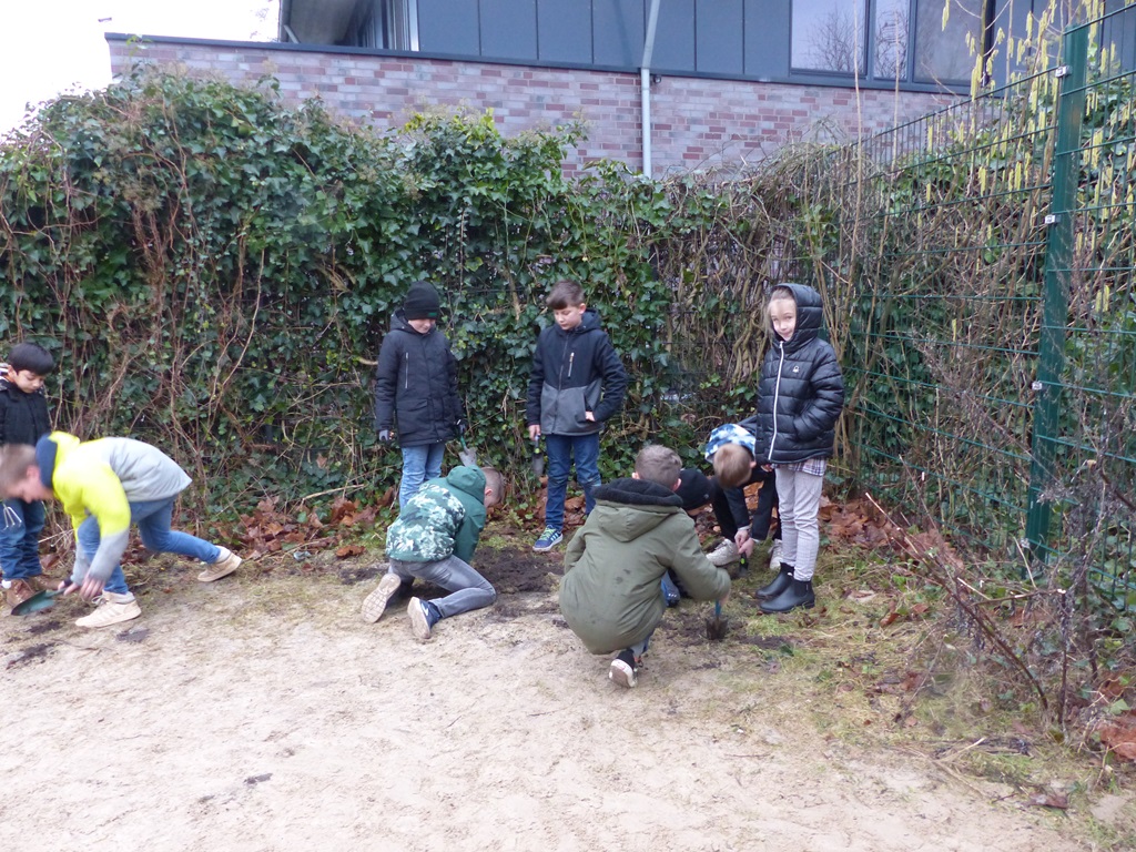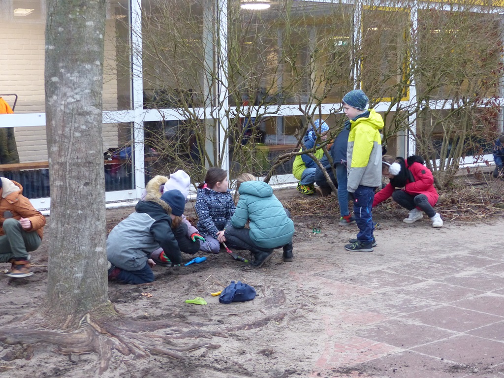 Am 31. Januar machten sich die Erstklässler gemeinsam mit ihren Klassenpaten aus Klasse 3 an das Pflanzen zahlreicher Blumenzwiebeln. Nun hoffen wir, dass unser Schulhof bald durch viele bunte Blumen verschönert wird.