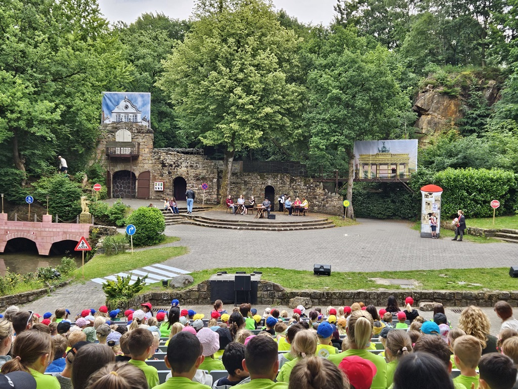 Am 04. Juni 2024 ging es mit der gesamten Schule zur Freilichtbühne nach Bad Bentheim. Zu sehen gab es eine moderne Auflage des Märchen-Klassikers "Rotkäppchen".