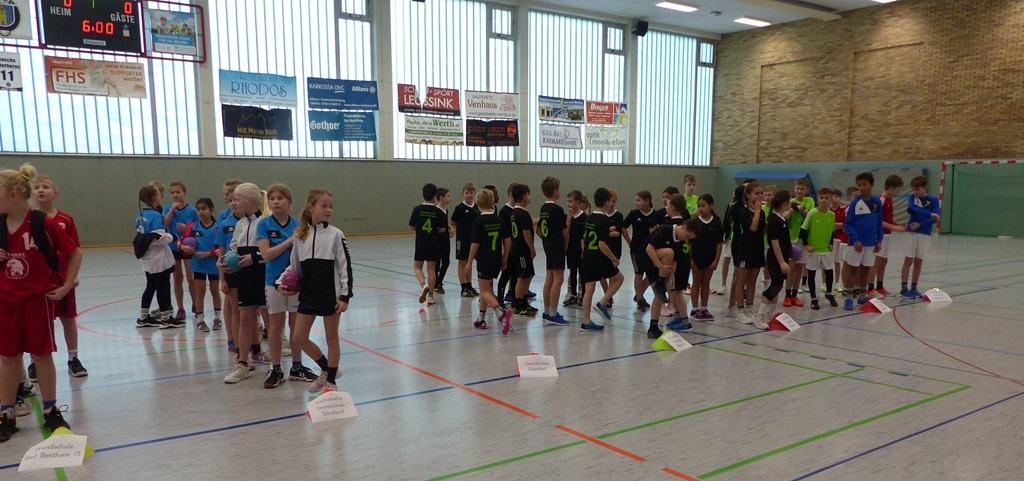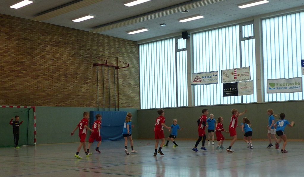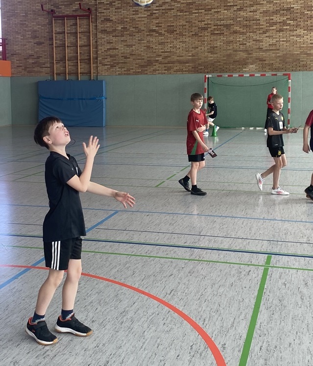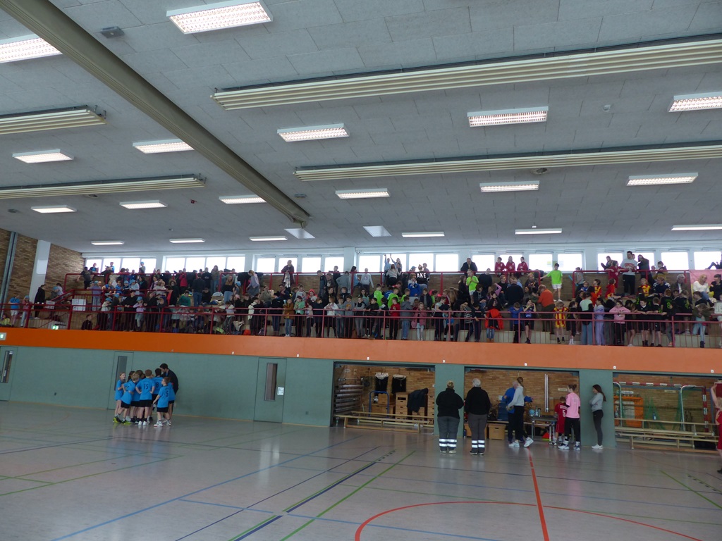 Am 02.04.2025 fand das Handballturnier der Obergrafschafter Grundschulen in der Jahnhalle in Schüttorf statt. Nachdem wir bereits in den Wochen zuvor gemeinsam trainiert hatten, starteten wir voller Vorfreude und Motivation in das Turnier. Leider verloren wir das erste Spiel gegen den Gastgeber der Evangelischen Grundschule recht deutlich. Allerdings konnten wir die nächsten beiden Spiele gewinnen, sodass wir tatsächlich als Gruppenzweiter das Halbfinale erreichten. Dort mussten wir uns jedoch dem späteren Turniersieger der GS Quendorf geschlagen geben. Am Ende erreichten wir einen tollen 4. Platz! An dieser Stelle ein herzliches Dankeschön an die Unterstützung vor Ort und für die Organisation des Turniers durch die Evangelische Grundschule!