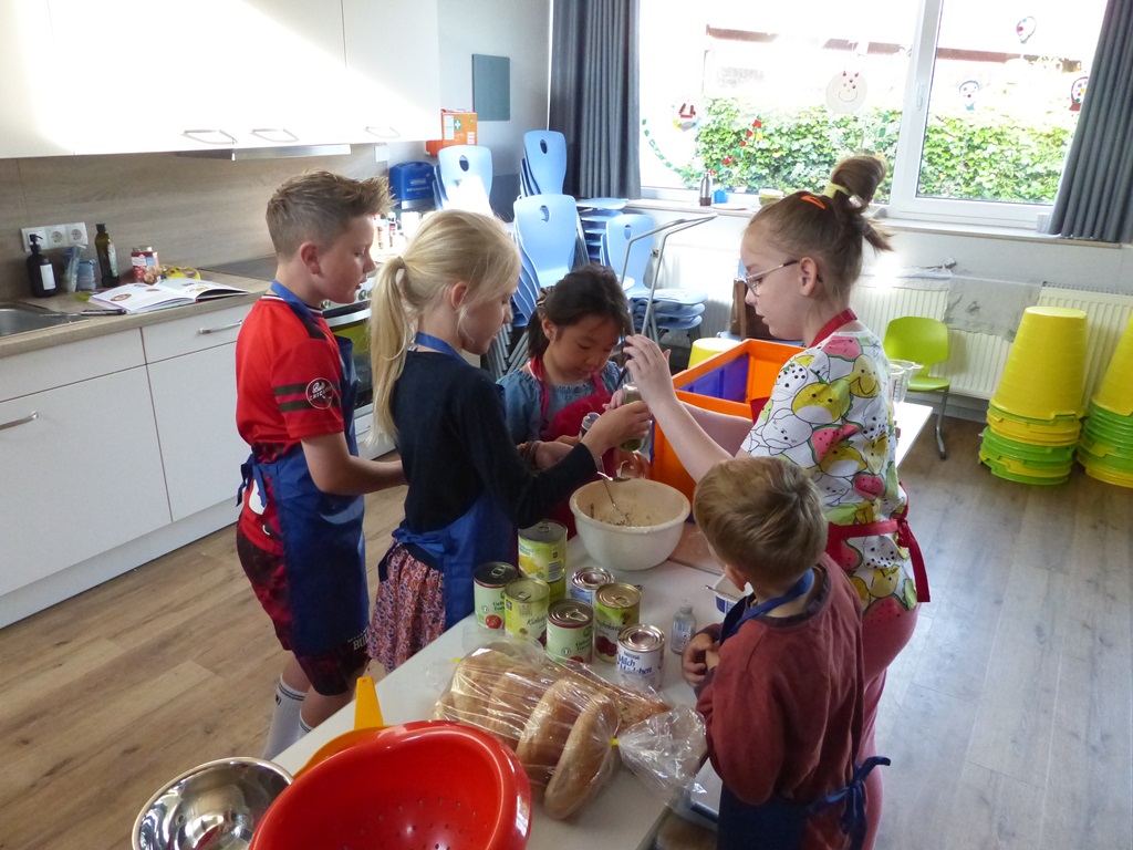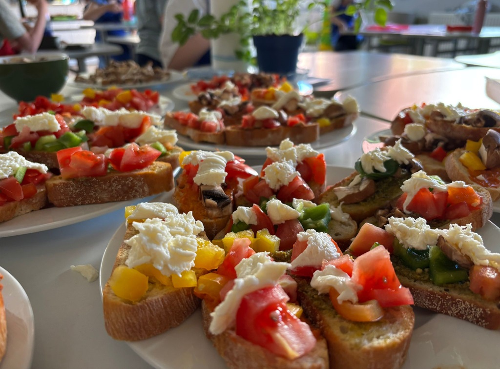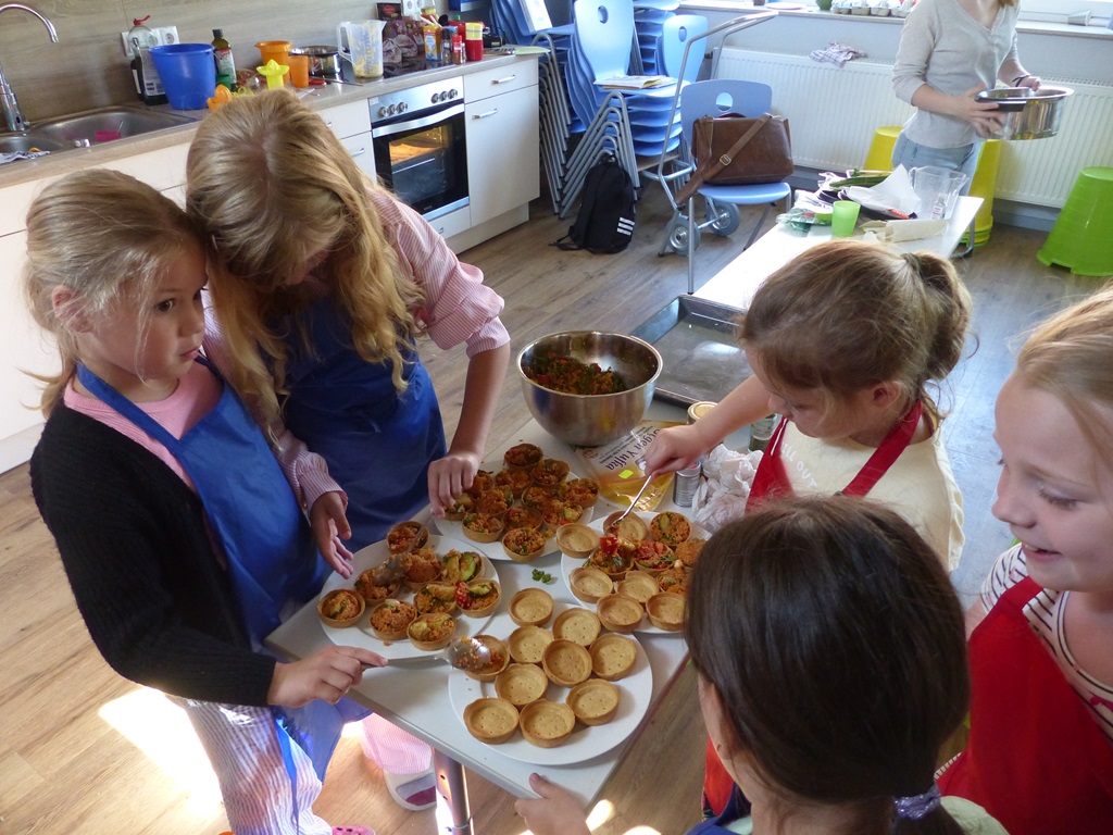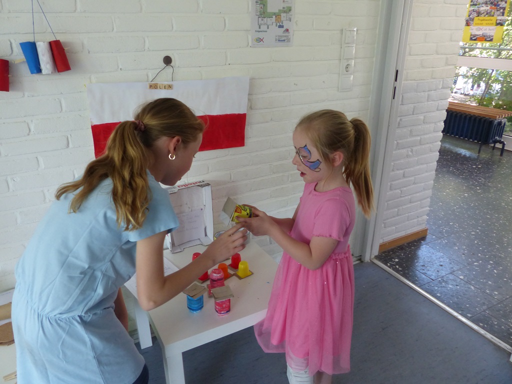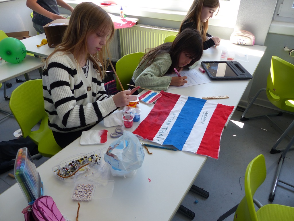 Eine ganze Woche lang konnten alle Hefte, Mappen und Bücher zu Hause gelassen werden. Stattdessen wurden Gerichte aus verschiedenen Nationen gekocht und gebacken, bunte Perlen-Armbänder gebastelt, kunterbunte Tänze und Cup-Songs eingeübt und verschiedene Beats trommelnd auf Eimern produziert. Auch hatten die Kinder die Möglichkeit, Spiele und Gesänge aus anderen Kulturen kennenzulernen oder mithilfe von Pappmaché riesige 3D-Buchstaben herzustellen und darüber hinaus Upcycling-Ideen umzusetzen.