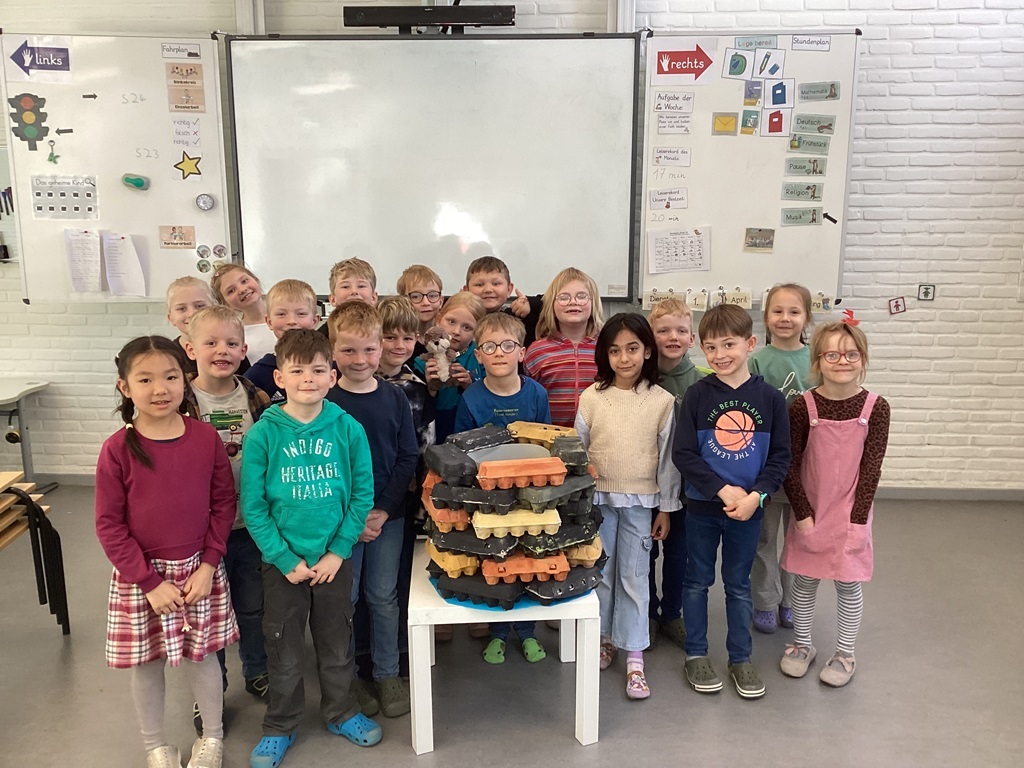Im Sachunterricht haben sich die zweiten Klassen intensiv mit dem Thema Mauern und Türme beschäftigt. Dabei durften die Kinder nicht nur theoretisch lernen, sondern auch selbst aktiv werden: Handlungsorientiert bauten sie stabile Mauern und Türme – sowohl im Massivbau als auch im Skelettbau. So konnten sie praktisch erfahren, welche Bauweisen besonders stabil sind. Wie Architekten fertigten die Kinder Sachzeichnungen ihrer Bauwerke an und übten dabei das präzise Skizzieren. Ein besonderes Highlight der Unterrichtseinheit war der abschließende Unterrichtsgang durch Schüttorf. Die Kinder erkundeten die historische Stadtmauer und durften den 81 Meter hohen Kirchturm der Schüttorfer Kirche – den „Schüttorfer Riesen“ – besteigen, der bereits im Jahr 1535 errichtet wurde. Von oben bot sich ein fantastischer Blick über die Stadt! Ein herzliches Dankeschön gilt Eva Nayda, die die Stadtführung geplant und mit den Kindern durchgeführt hat. Mit vielen neuen Eindrücken und spannenden Erkenntnissen ging das Projekt zu Ende!