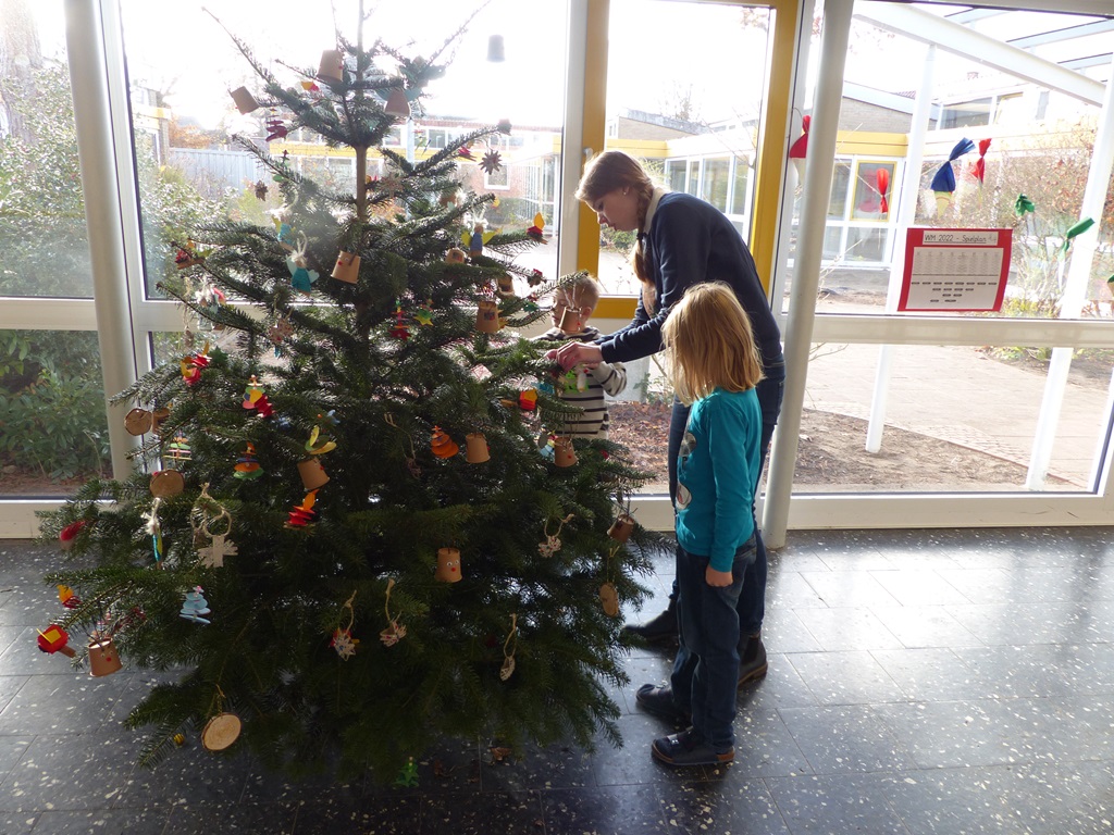 Wie auch bereits in den vergangen Jahren haben wir am Freitag vor dem 1. Advent mit allen Schülerinnen und Schülern weihnachtliche Dekoration für die Fenster und unseren Tannenbaum gebastelt - von Rentieren über Kerzen bis hin zu Engeln kann nun ein weihnachtlicher Glanz an Tannenbaum und Fenstern bewundert werden. So kann Weihnachten kommen.
