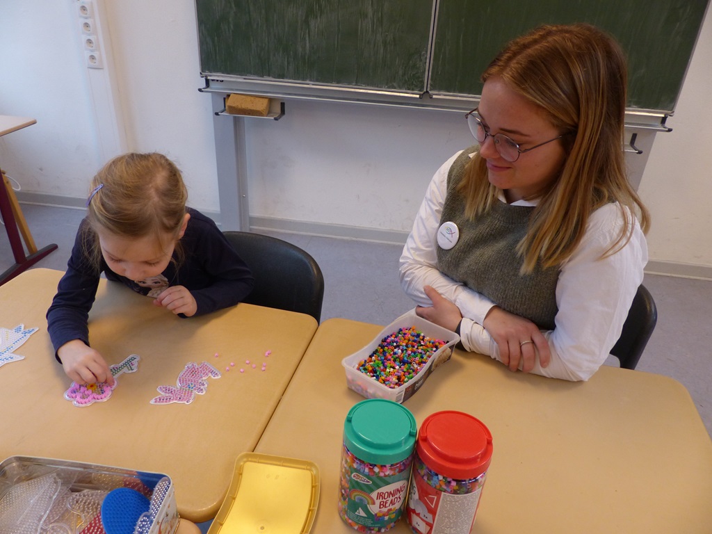 Die neugierigen Kinder konnten Experimente durchführen, Musikinstrumente ausprobieren, die Arbeit mit den Schul-iPads austesten oder kleine Basteleien und Buttons anfertigen. Ebenso wurden erste Buchstaben an die digitalen Tafeln geschrieben und Spiele zum Trainieren der Wahrnehmung gespielt.
