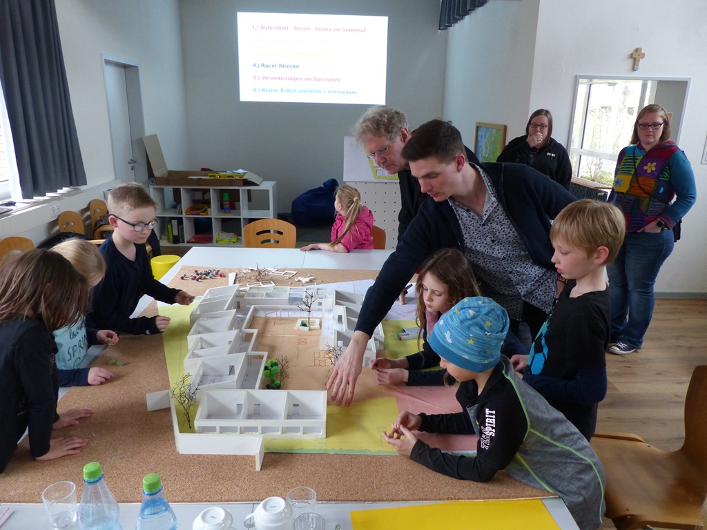 Unter professioneller Anleitung haben Schüler, Eltern und Lehrer an einem Samstag im April gemeinsam an einem Plan zur Umgestaltung unseres Schulhofs gearbeitet. Aus zahlreichen Ideen haben wir die besten zusammengetragen und sind stolz auf das Endergebnis. Dann heißt es in den nächsten Jahren: Die Ärmel hochkrempelt und frisch ans Werk!
