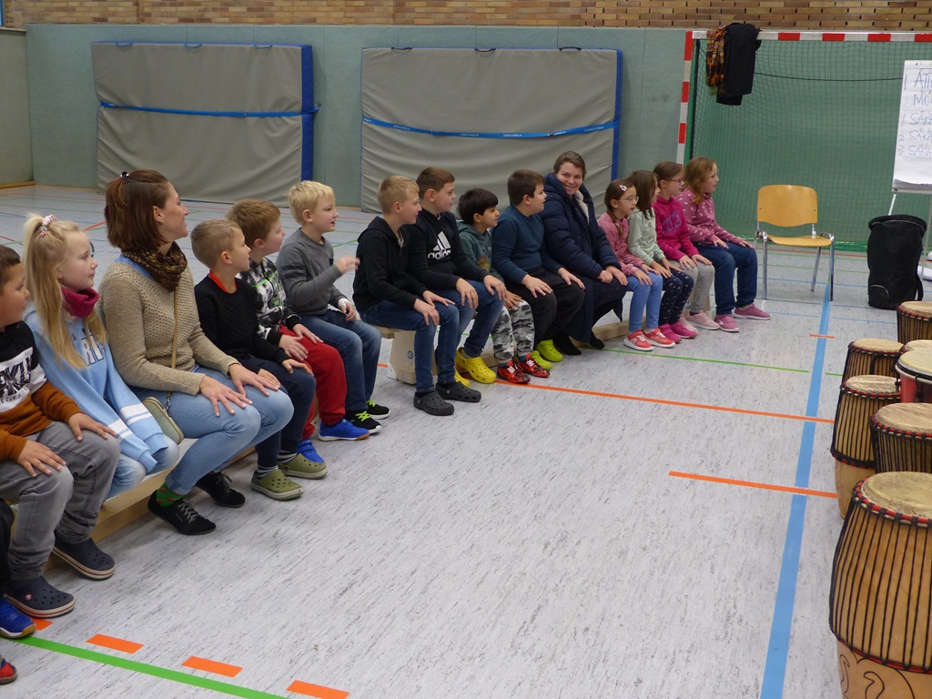 Wie schon in den vergangenen Jahren erfüllten auch in diesem Jahr mitreißende Trommelklänge die Sporthalle. Gemeinsam mit Michael erlebten die Schülerinnen und Schüler der KGS verschiedene Rhythmen, afrikanisches Lebensgefühl und vor allem jede Menge Spaß und Begeisterung am gemeinsamen Musizieren.