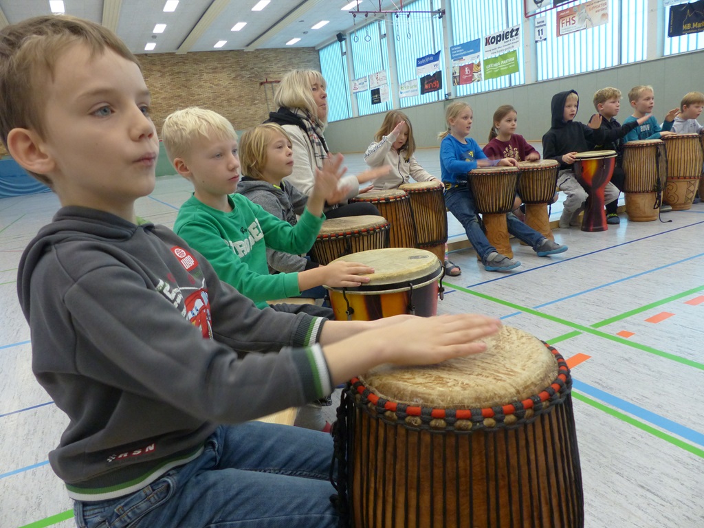 Auch in diesem Jahr konnten die Schülerinnen und Schüler wieder gemeinsam mit Morphius und Michael trommeln. Im Mittelpunkt standen feurige und mitreißende Rhythmen, afrikanisches Lebens-gefühl und vor allem viel Freude und Begeisterung für das gemeinsame Musizieren.