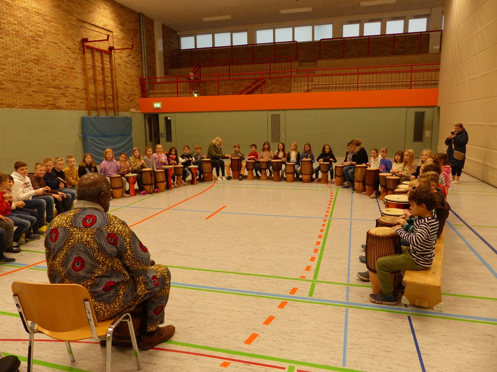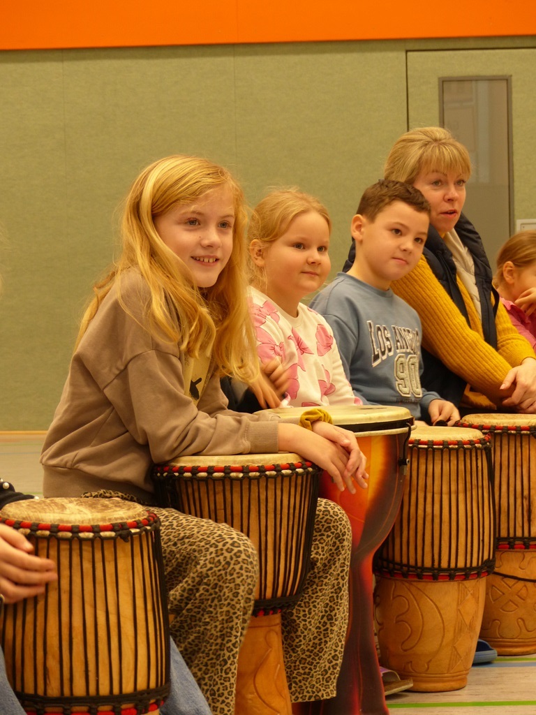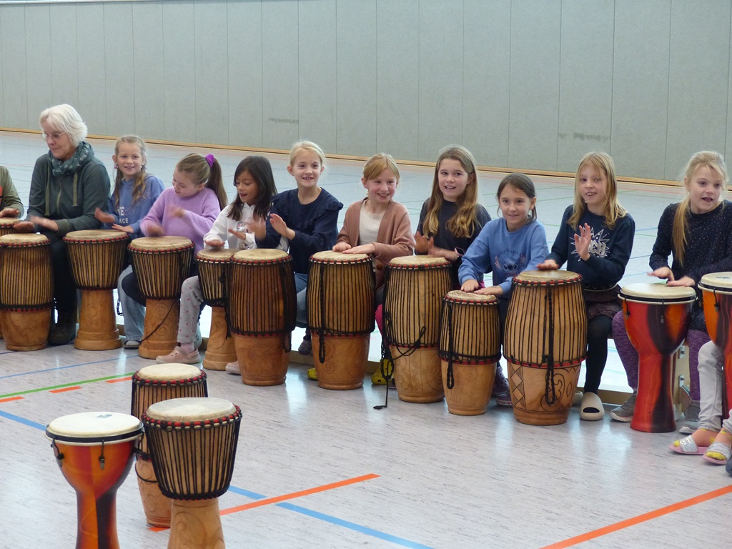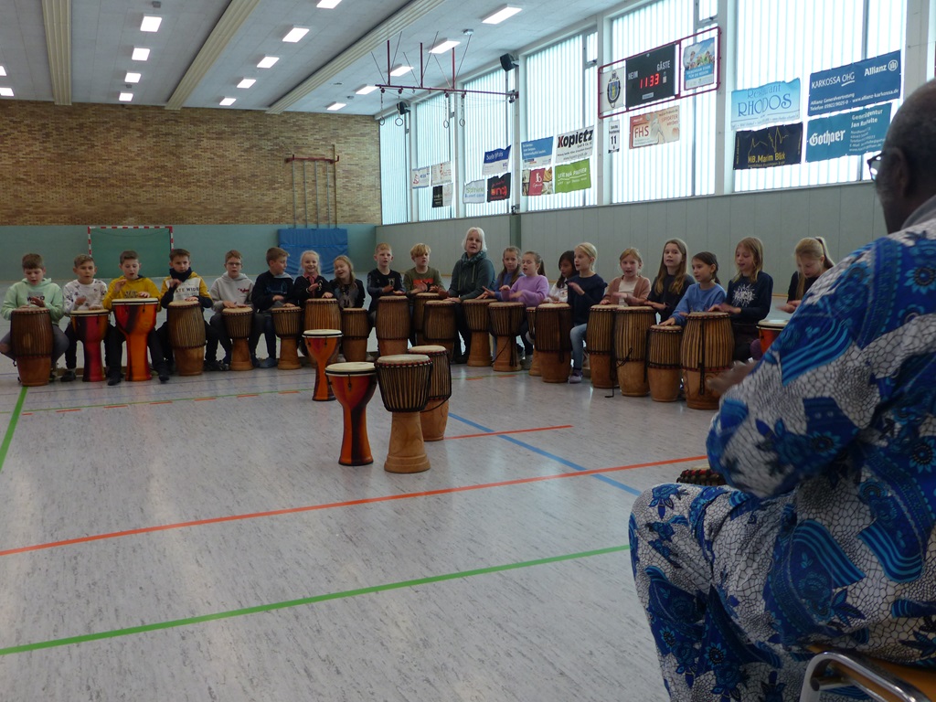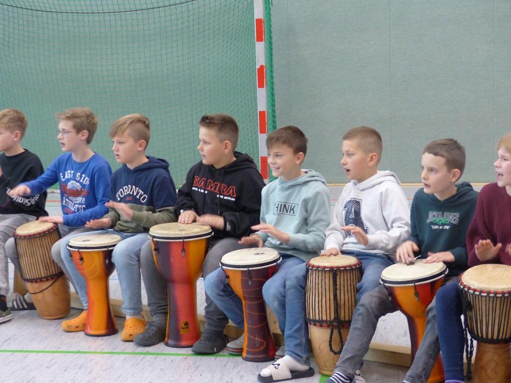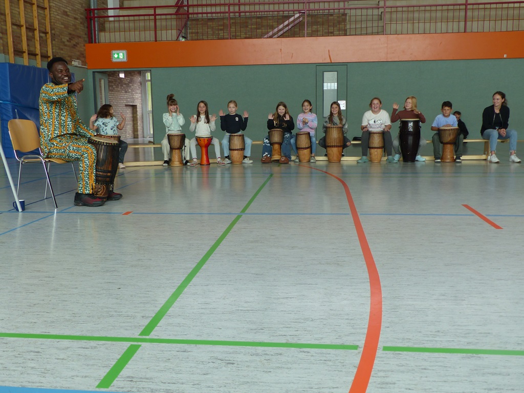 Auch in diesem Jahr konnten die Schülerinnen und Schüler wieder gemeinsam mit Morphius und Michael trommeln. Im Mittelpunkt standen feurige und mitreißende Rhythmen, afrikanisches Lebensgefühl und vor allem viel Freude und Begeisterung für das gemeinsame Musizieren.