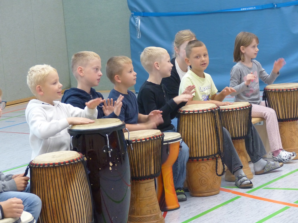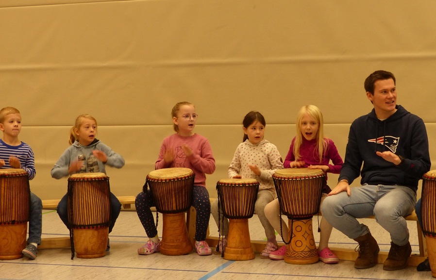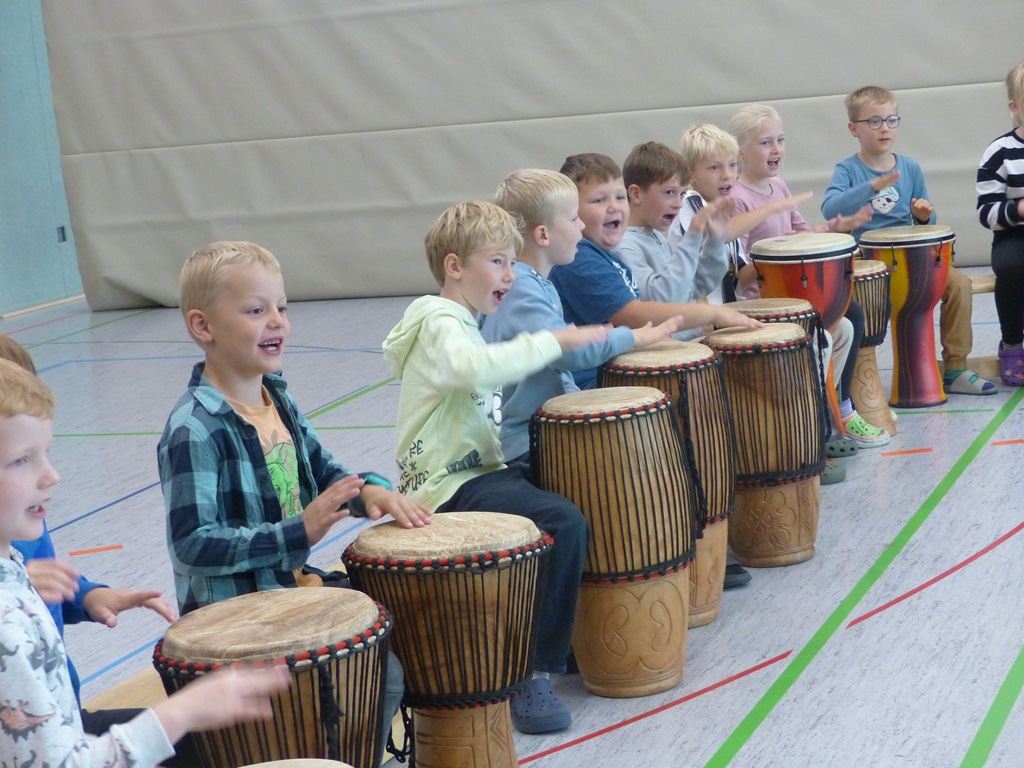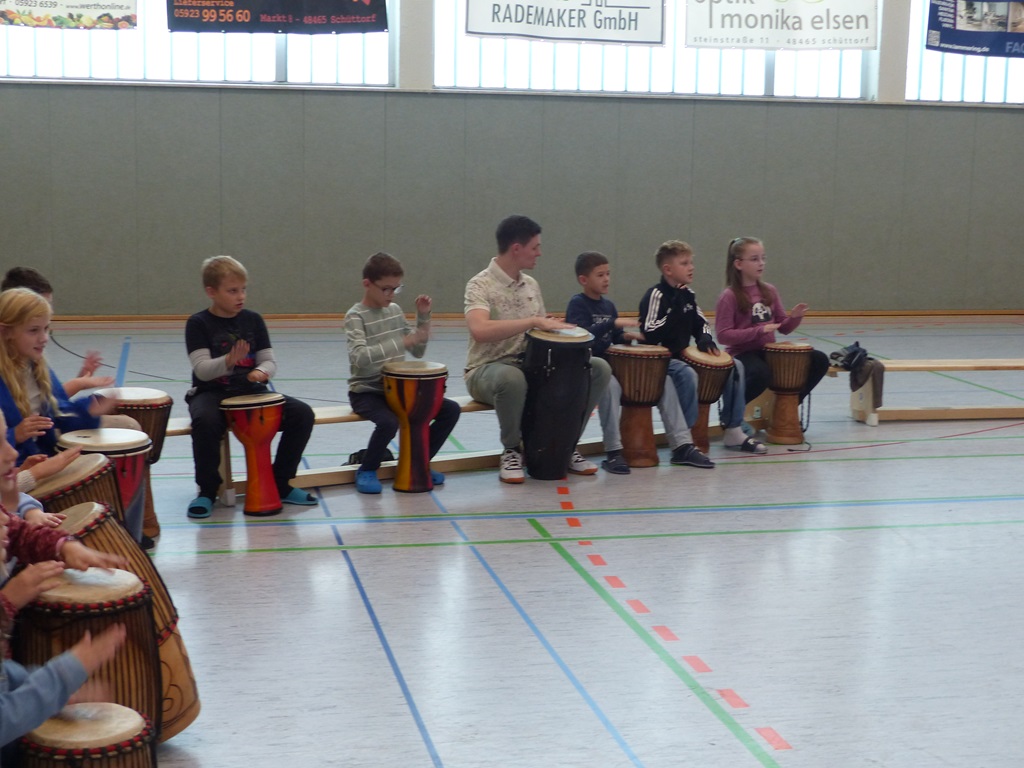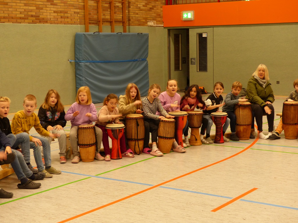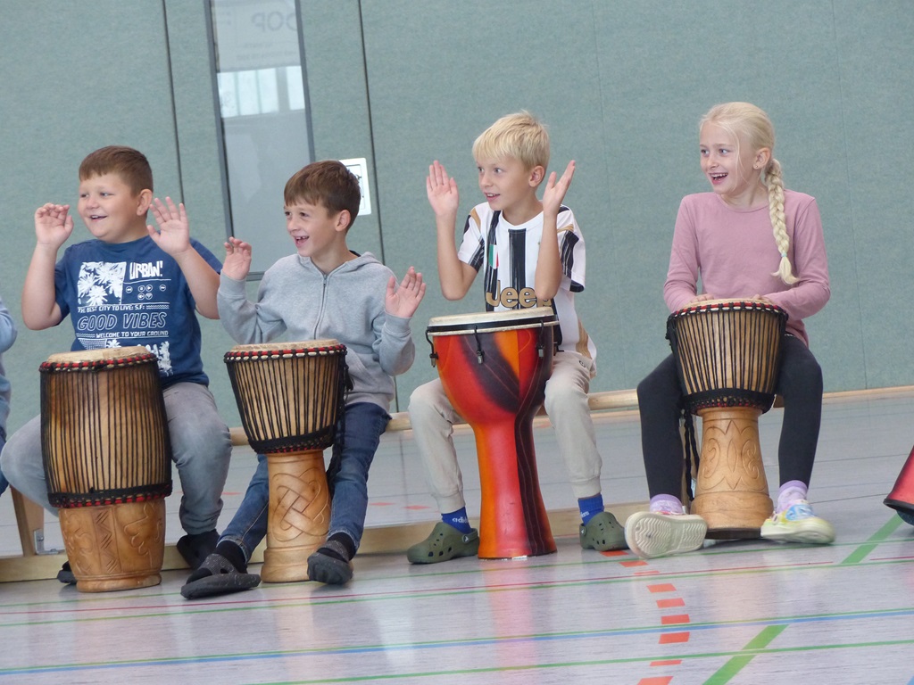 Auch in diesem Jahr konnten die Schülerinnen und Schüler wieder gemeinsam mit Morphius und Michael trommeln. Im Mittelpunkt standen feurige und mitreißende Rhythmen, afrikanisches Lebensgefühl und vor allem viel Freude und Begeisterung für das gemeinsame Musizieren.