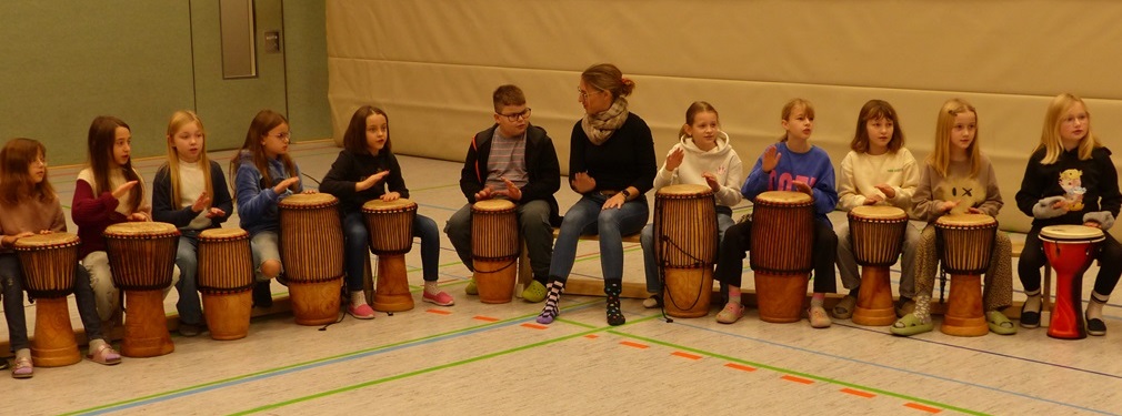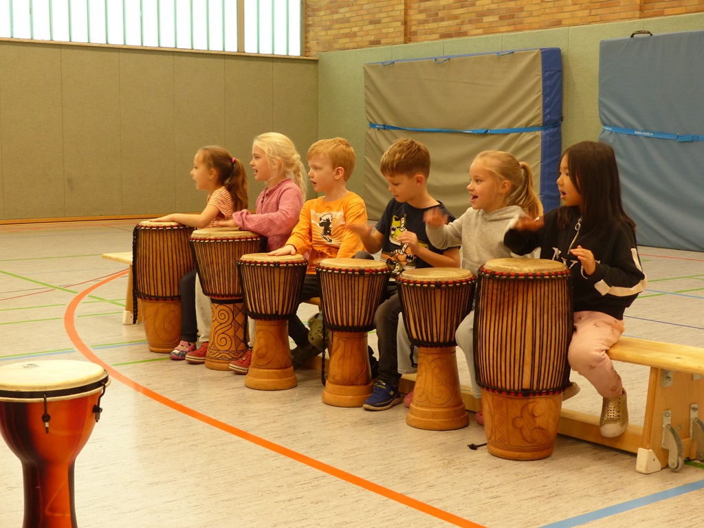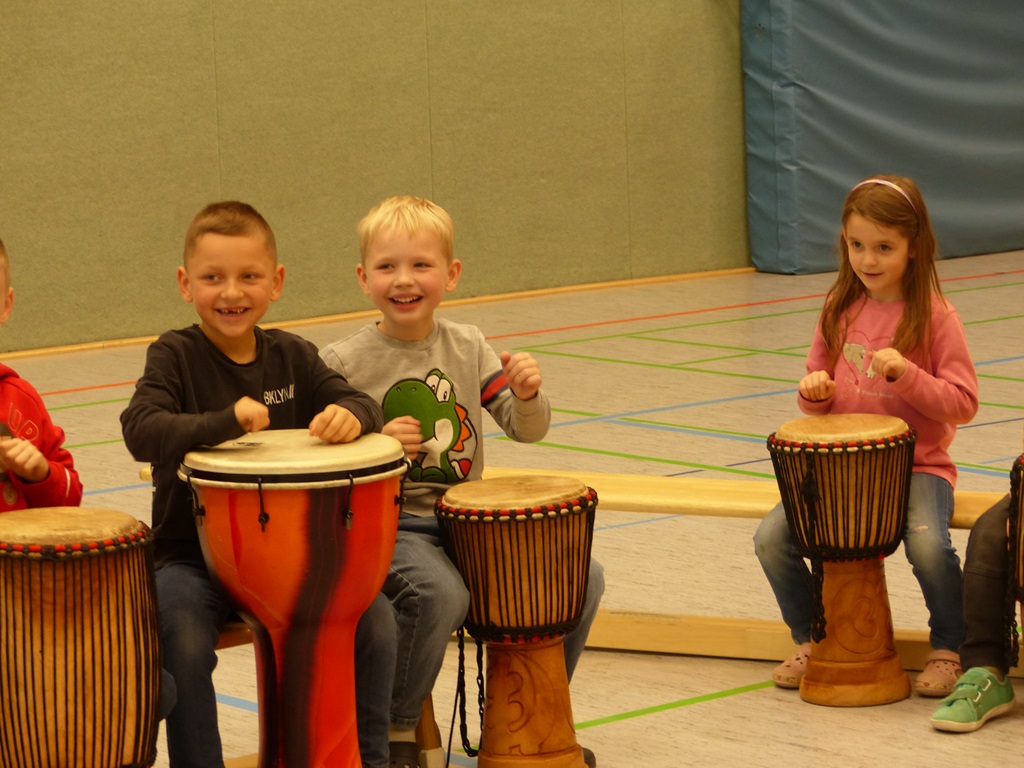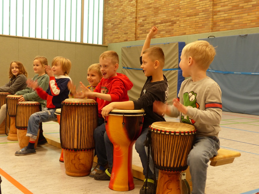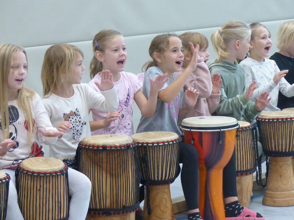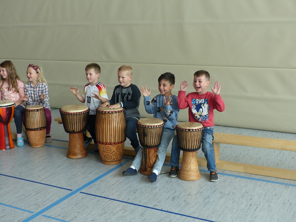 Auch in diesem Jahr konnten die Schülerinnen und Schüler wieder gemeinsam mit Morphius und Michael trommeln. Im Mittelpunkt standen feurige und mitreißende Rhythmen, afrikanisches Lebensgefühl und vor allem viel Freude und Begeisterung für das gemeinsame Musizieren.