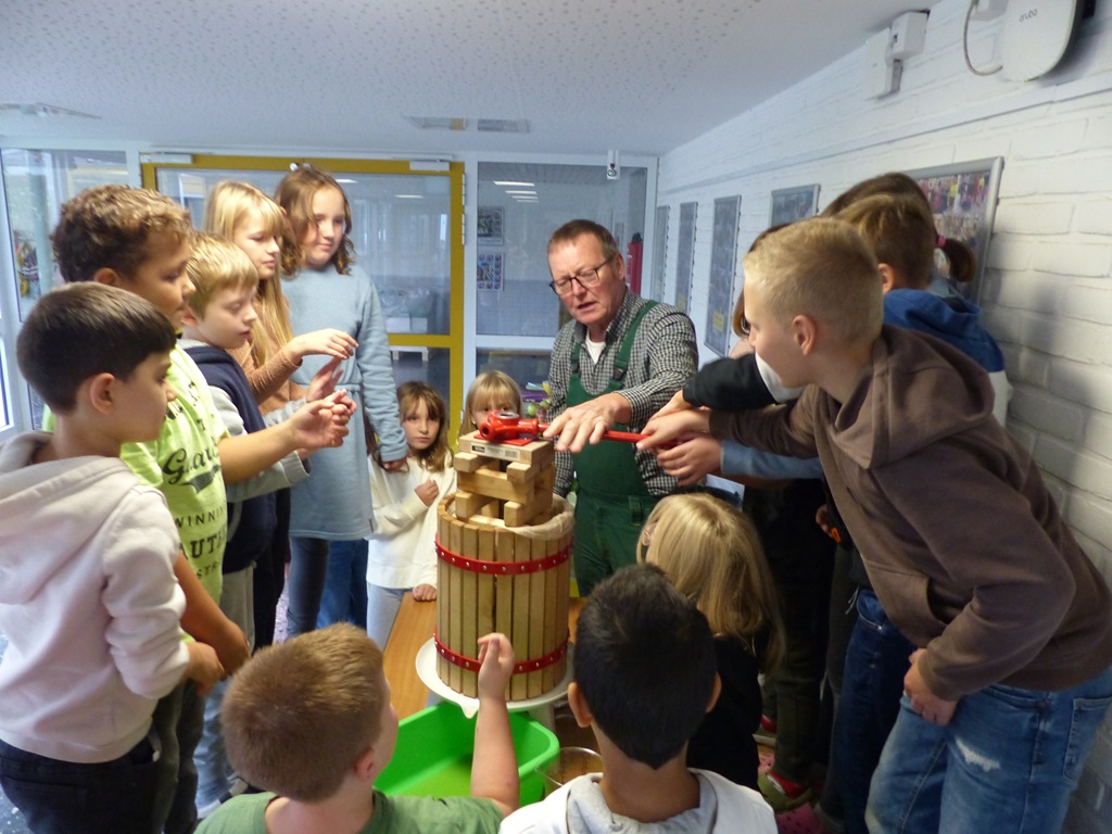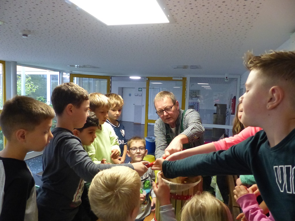 Vielen Dank an Herrn Vollmer für den interessanten Vormittag und an die Eltern für die zahlreichen Apfelspenden.