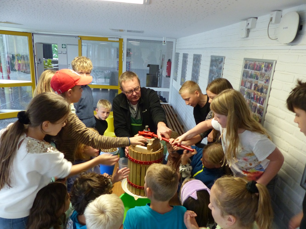 Auch in diesem Jahr konnten die Schüler der KGS - unter der Anleitung von Clemens Vollmer - mit viel Freude eigenständig Apfelsaft herstellen.