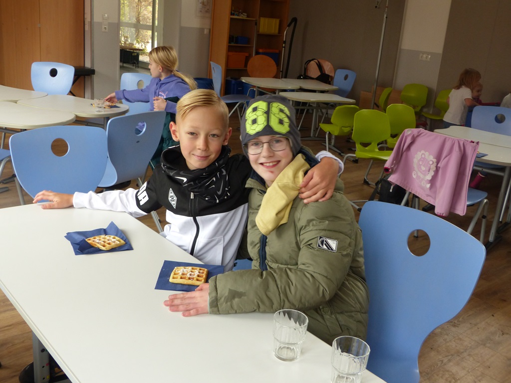 So kurz vor Weihnachten war die Aufregung bei den Kindern riesig und heute stand nun endlich der letzte Schultag vor den lang ersehnten Weihnachtsferien an. Den nutzten die Klassen traditionell für das gemeinsame Backen leckerer Waffeln oder für ein gemeinsames Frühstück. Im Anschluss wurde ein Weihnachtsfilm geschaut.