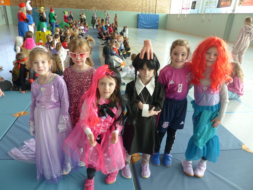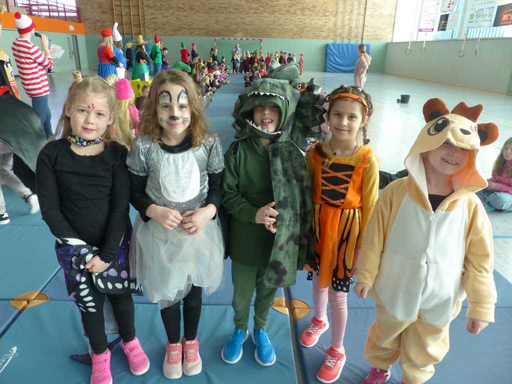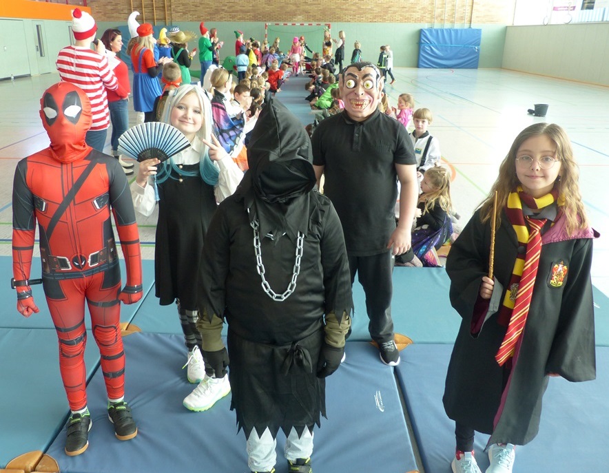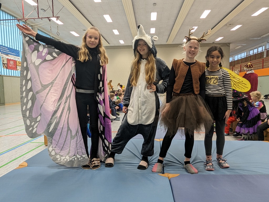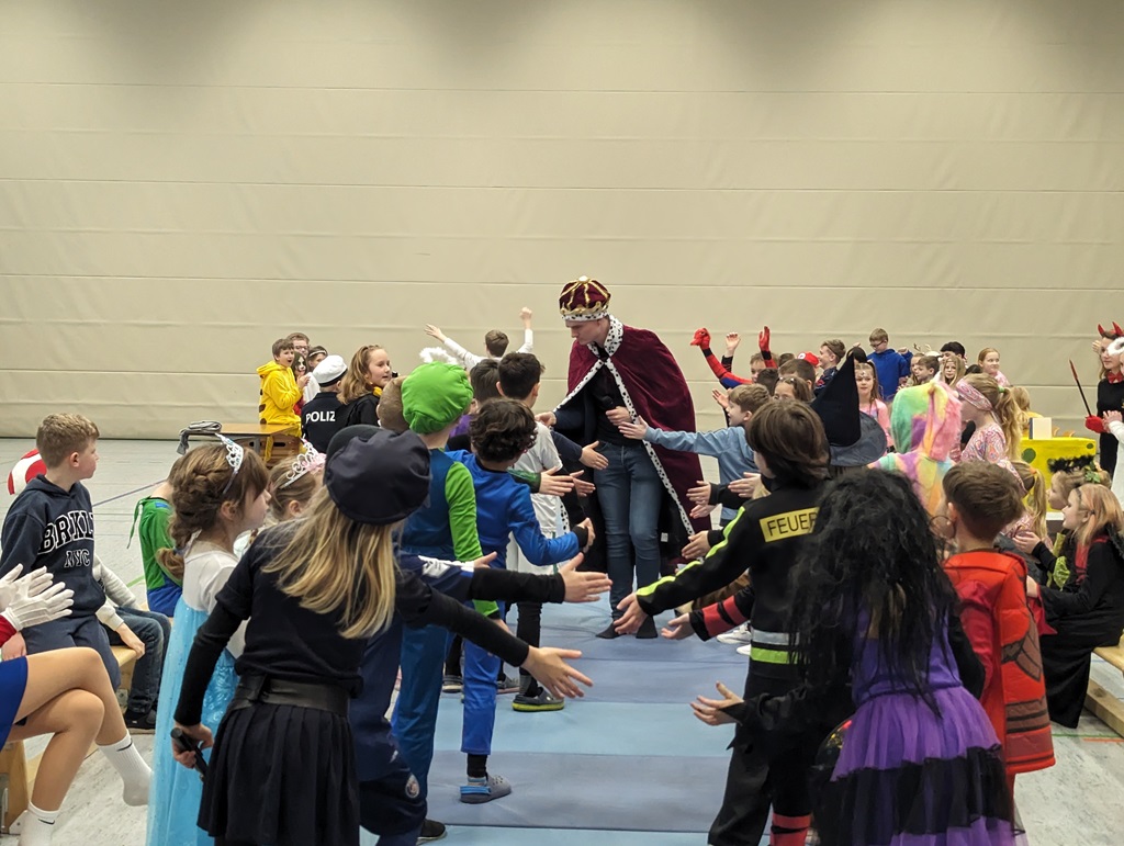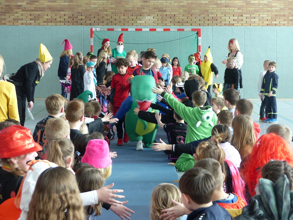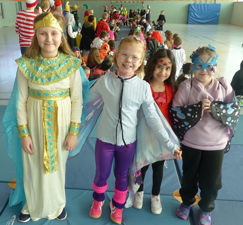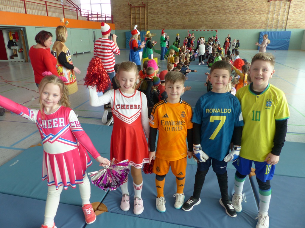 Endlich steigt die Karnevalsstimmung! Alle aus der Schule haben sich cool verkleidet. Und wir haben in der Sporthalle einen Bewegungs-parcours gemacht. So wie immer haben wir auch einen Laufsteg gemacht, auf dem alle ihre Kostüme präsentieren konnten. Das war richtig toll! Außerdem haben wir in den Klassen tolle Spiele gespielt.