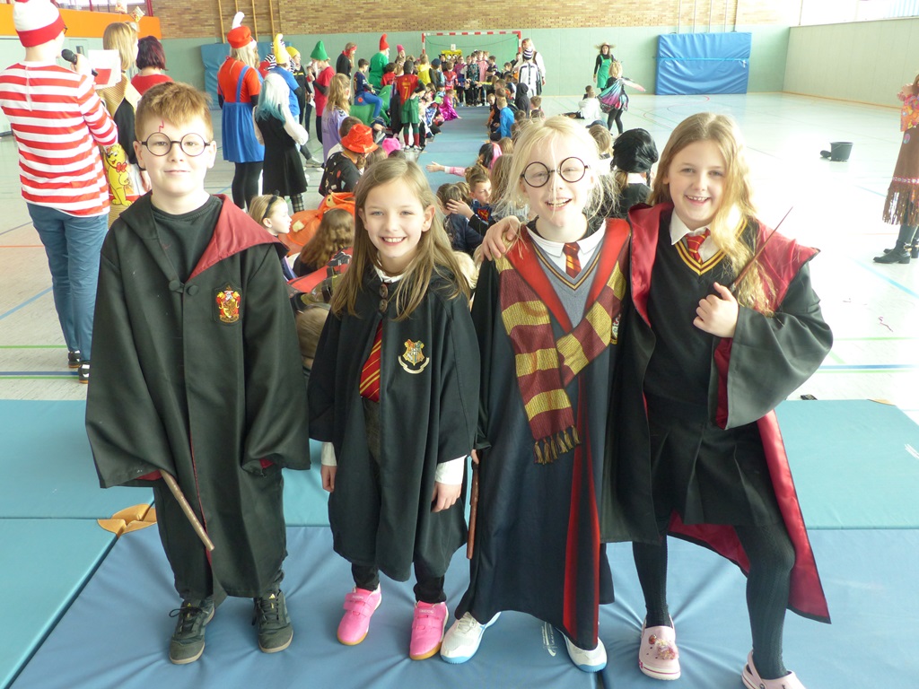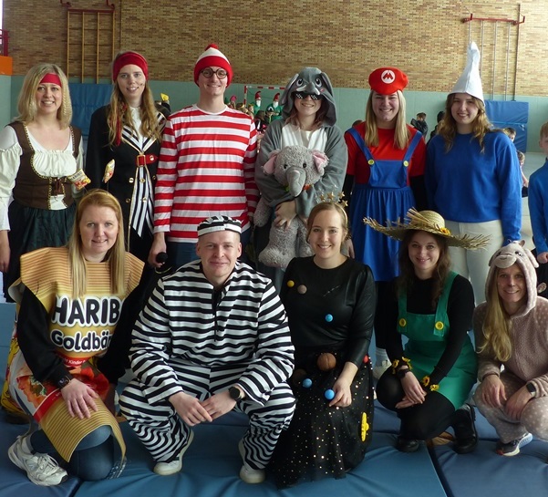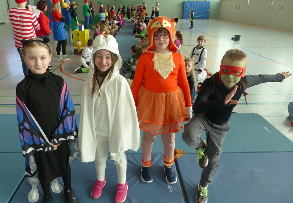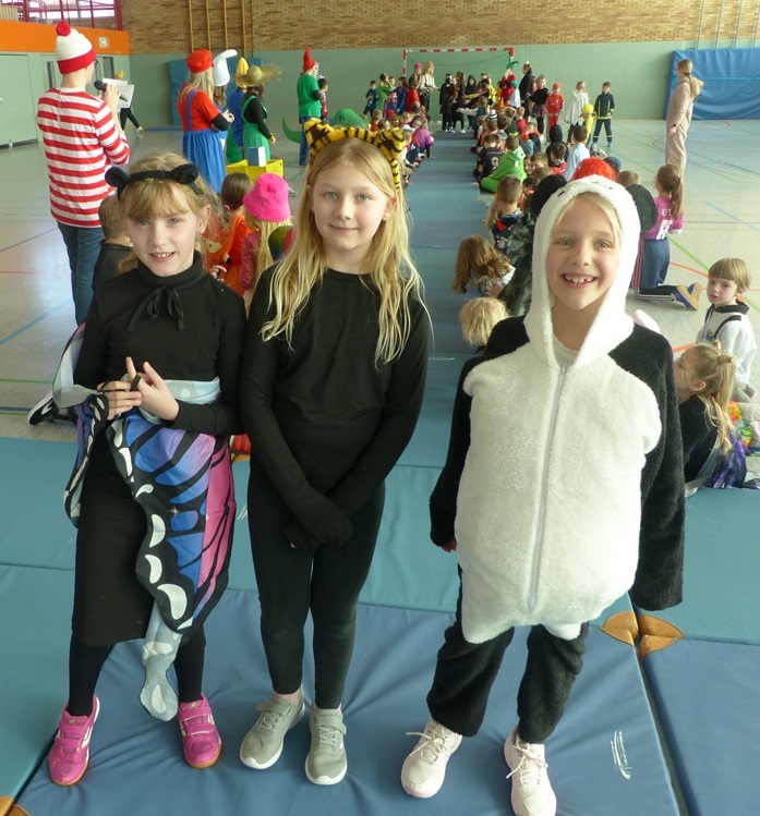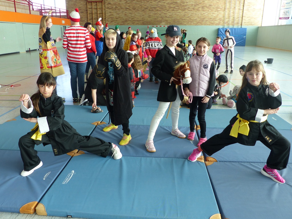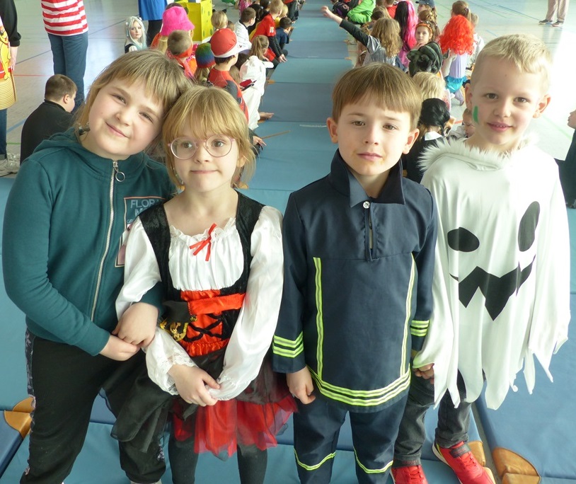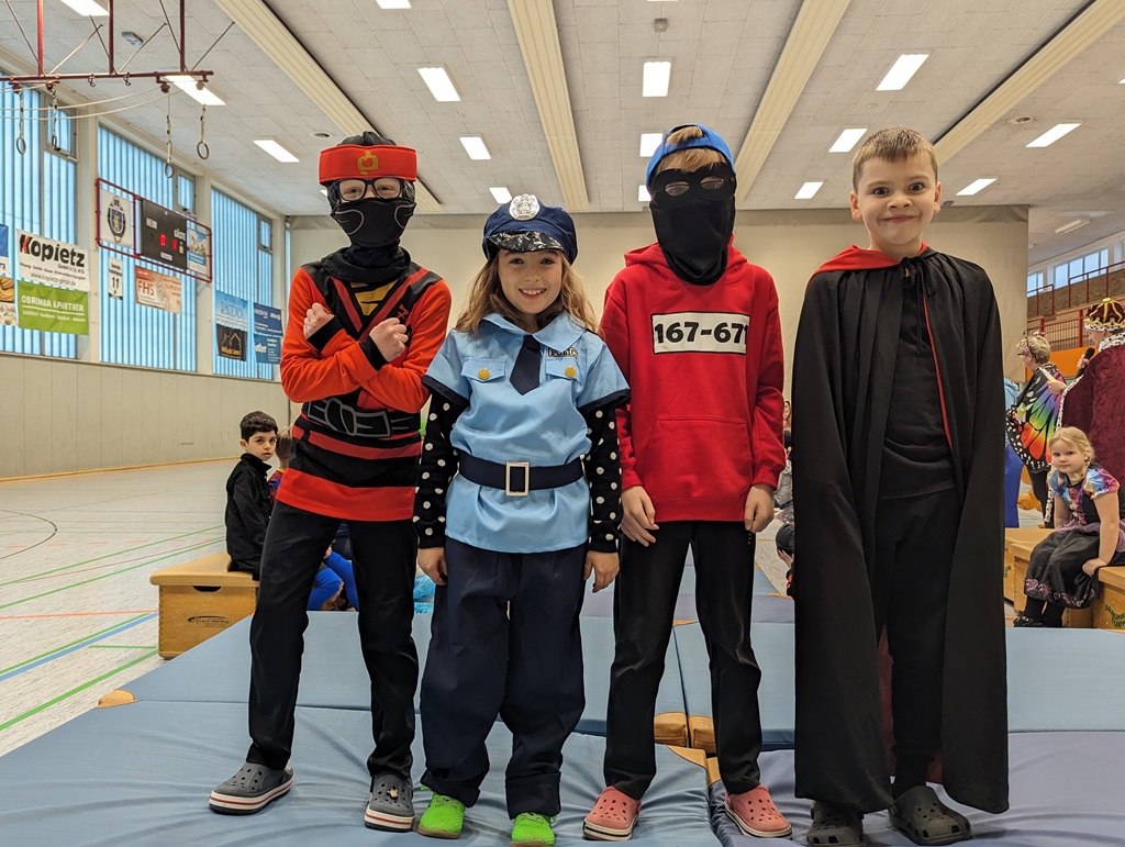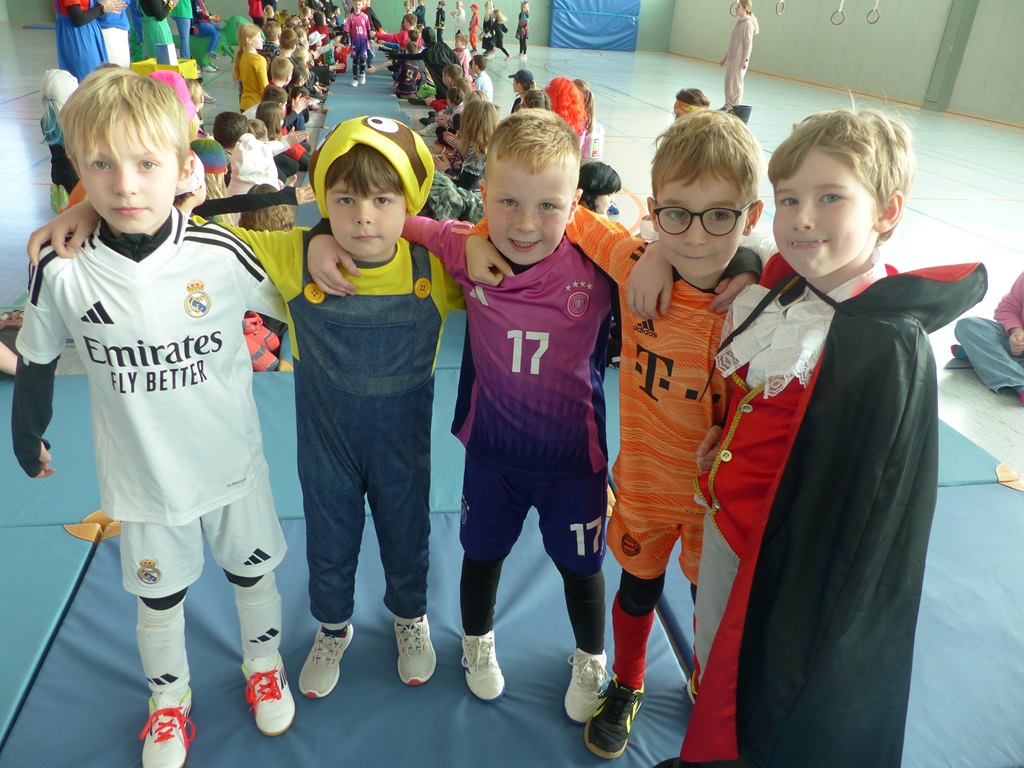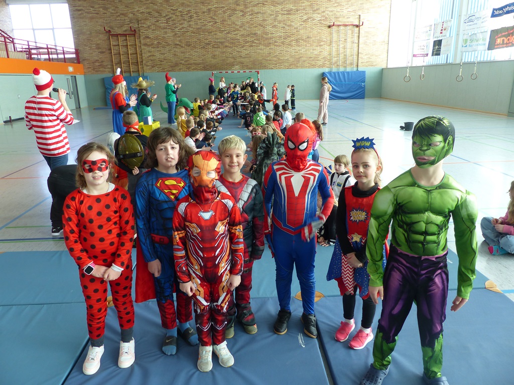 Endlich steigt die Karnevalsstimmung! Alle aus der Schule haben sich cool verkleidet. Und wir haben in der Sporthalle einen Bewegungs-parcours gemacht. So wie immer haben wir auch einen Laufsteg gemacht, auf dem alle ihre Kostüme präsentieren konnten. Das war richtig toll! Außerdem haben wir in den Klassen tolle Spiele gespielt.