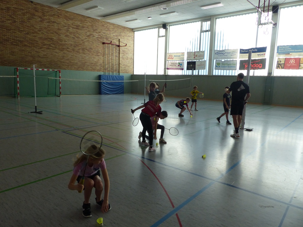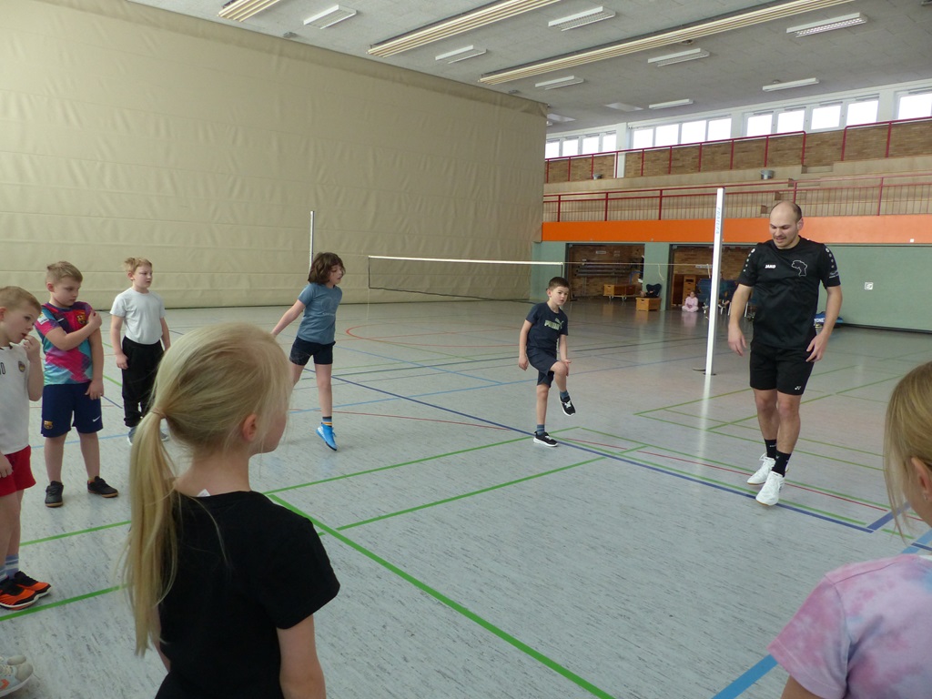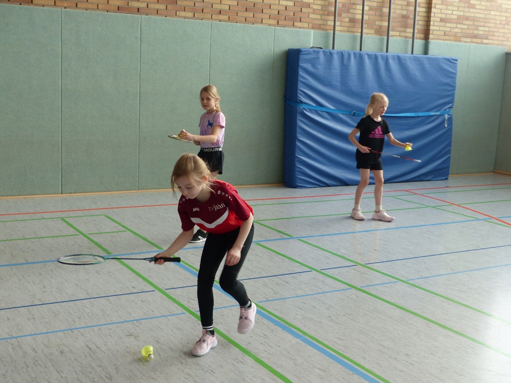 Am 06.03.2025 und am 10.03.2025 fanden die diesjährigen Badminton - Projekttage in den zweiten Klassen unserer Schule statt. Ein Jugendtrainer und Spieler der Schüttorfer Badmintonabteilung vermittelte den Kindern verschiedene Grundelemente des Badmintons und bereitete ein kleines Schnuppertraining für sie vor. Nach einer anfänglichen Testphase durfte jedes Kind ausprobieren, wie viele Schläge ihm hintereinander gelingen und dabei seinen eigenen Rekord aufstellen. Am Ende der Stunde waren dann alle Kinder so gut in die Sportart eingeführt, dass sie mit einem Partner sogar schon den Ball über das Netz spielen konnten. Das war ein schöner Exkurs in eine neue Sportart.