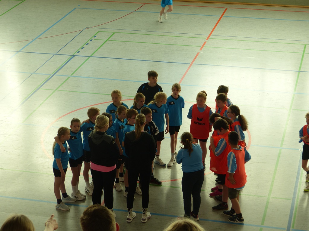 Am 29.02.2024 war es soweit: Das Handballturnier der Obergrafschafter Grundschulen stand an. Voller Motivation und Vorfreude machte sich unser Team aus Schülerinnen und Schülern der dritten und vierten Klassen am Donnerstagmorgen auf den kurzen Weg in die Jahnhalle. Da die Katholische Grundschule in diesem Jahr der Ausrichter des Turniers war, wurde das Team während des gesamten Turniers durch verschiedene Klassen der KGS lautstark angefeuert. Auch wenn wir in jedem Spiel bis zur letzten Sekunde gekämpft haben, blieb der sportliche Erfolg leider aus. Trotzdem waren sich am Ende alle Spielerinnen und Spieler der Mannschaft einig: Wir haben zwar nicht gewonnen, aber es hat trotzdem Spaß gemacht! Ganz nach dem olympischen Motto: Dabei sein ist alles!