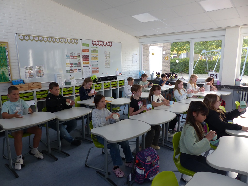 Insekten sind wichtig! – Unter diesem Motto stand das Projekt „Biene, Ameise und Co“ der Deutsche Umwelt-Aktion e.V. So lernten die Viertklässlerinnen und Viertklässler, welche Tiere überhaupt zur Gruppe der Insekten gehören und woran man diese erkennen kann (nämlich an den sechs Beinen!). Mithilfe eines Teleidoskops konnten die Kinder zudem die Welt aus der Sicht einer Fliege sehen. Im Anschluss erfolgte ein Quiz mit vielen Fragen rund um das Thema „Insekten“. Am Ende durften die Kinder mit verschiedenen insektenfreundlichen Samen und Erde Samenbomben herstellen. Diese konnten sie mit nach Hause nehmen.
