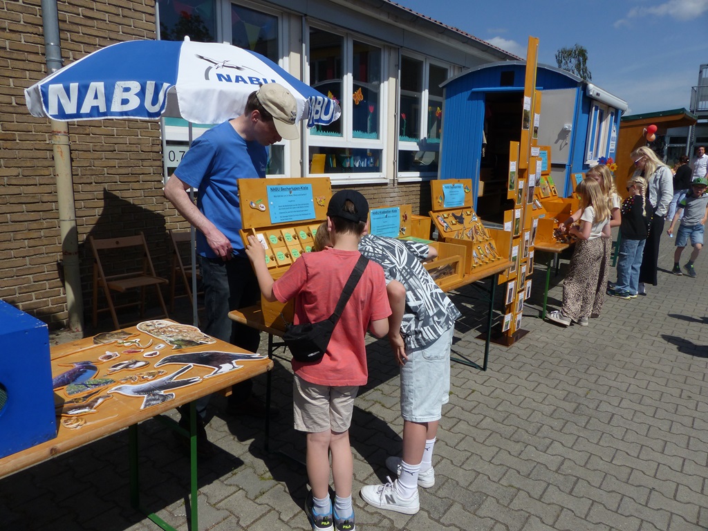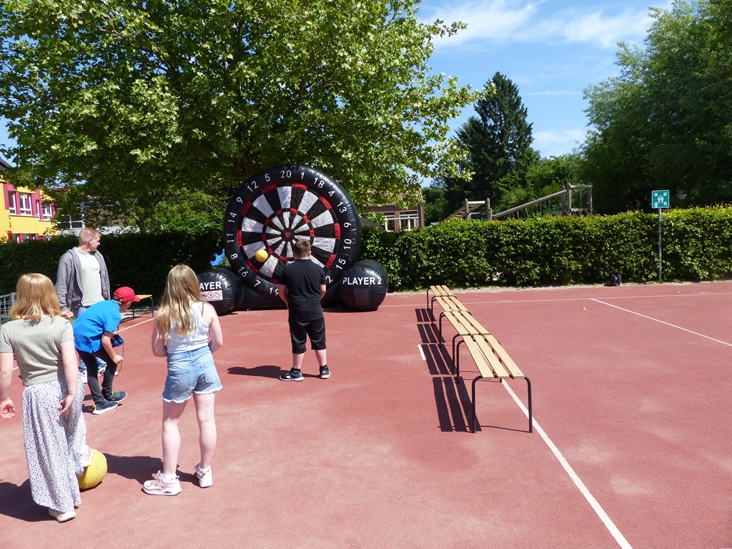 Angeboten wurden viele spannende Attraktionen: Das beliebte Fußballdart, bei dem die kleinen Torjägerinnen und Torjäger ihre Zielgenauigkeit unter Beweis stellen konnten, die Tombola, die viele tolle Preise bereithielt sowie das Katapult, bei dem sich die Kinder Überraschungen erwerfen konnten. Auch das Kinderschminken brachte viel Freude und Farbe auf das Fest. Besonders die Wasserspiele der Feuerwehr waren bei den warmen Temperaturen ein Hit – hier konnten die Kinder sich erfrischen und gleichzeitig etwas über die Arbeit der Feuerwehr lernen. Außerdem gab es einen NABU-Wagen, der spannende Einblicke in die Natur und den Naturschutz bot. Zudem hat der NABU tolle Preise in Form von Aktivitäten für die Tombola gesponsert, was die Gewinnchancen für die Kinder noch attraktiver machte.