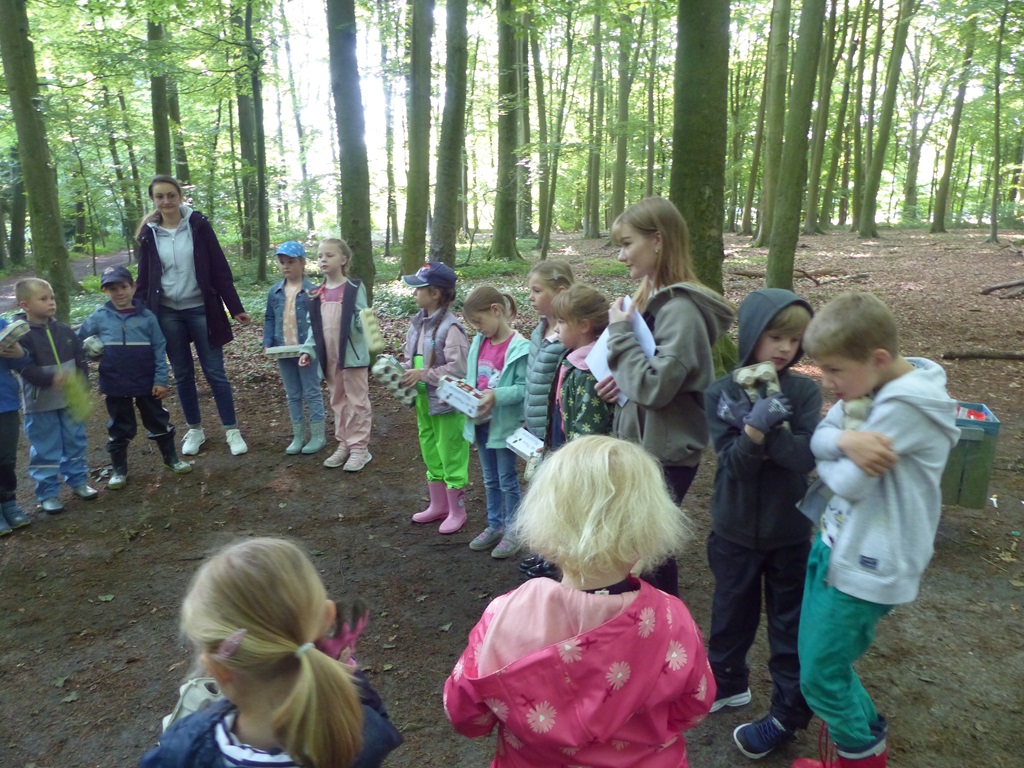 Im Juli haben die ersten Klassen einen spannenden Tag im nahe gelegenen Wald verbracht. Gemeinsam haben wir die vielen Pflanzen und Tiere entdeckt, geforscht und gespielt. In einem Eierkarton haben wir Waldschätze zu verschiedenen Farben gesammelt. Unsere Waldschätze haben wir anschließend erforscht. Aus den gesammelten Waldschätzen wurden Schmetterlinge gebastelt. Es war ein wunderschöner Tag voller Abenteuer, Bewegung und frischer Luft - und natürlich auch mit ganz viel Spaß! Wir bedanken uns bei unserer Praktikantin Elena, die diesen besonderen Tag geplant hat.