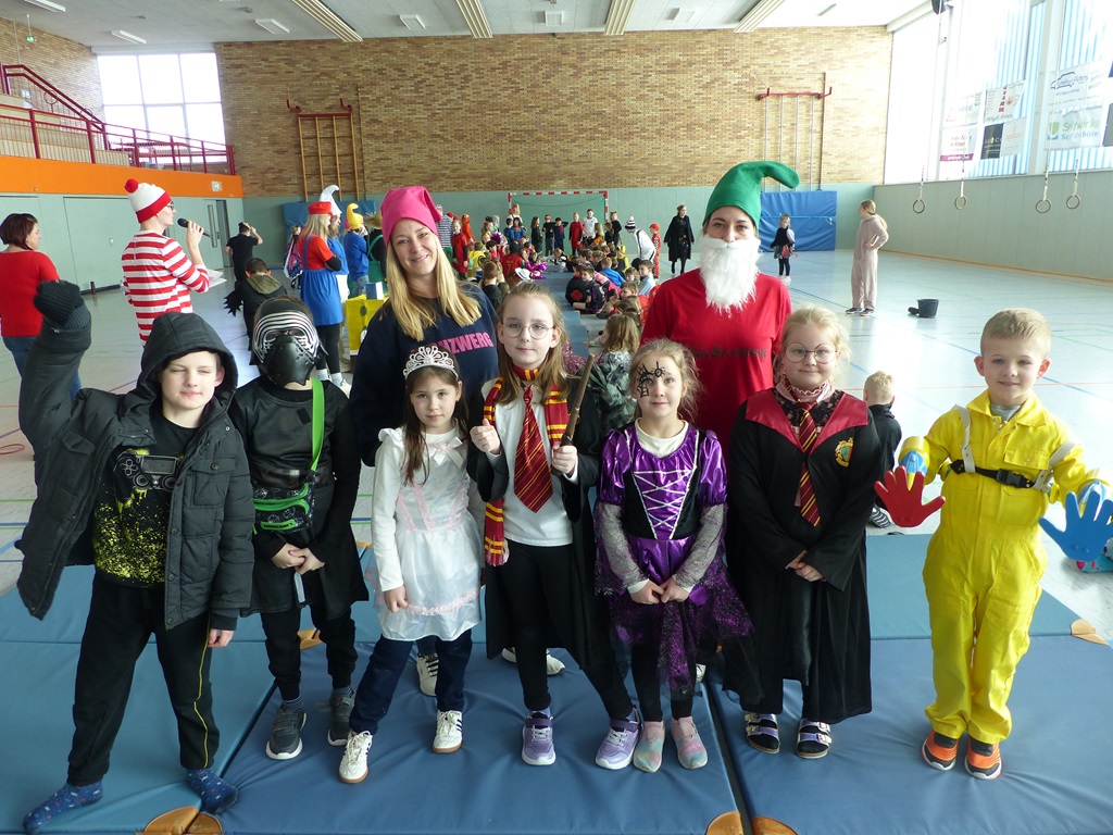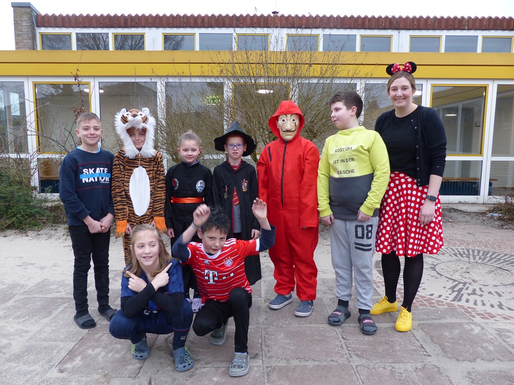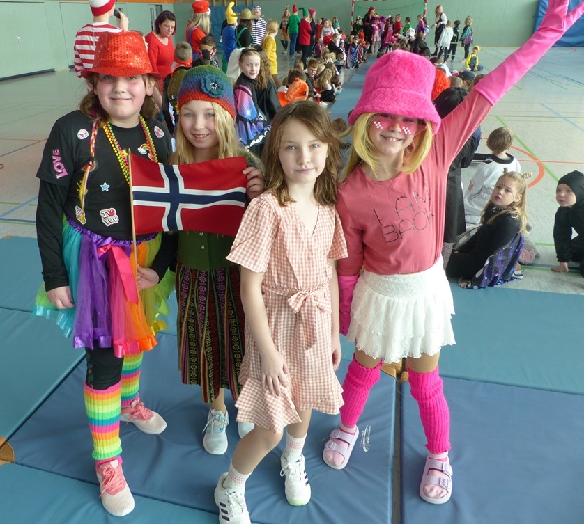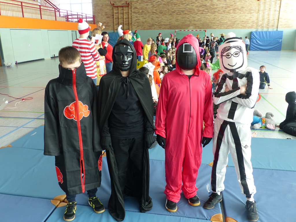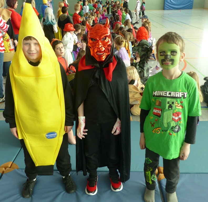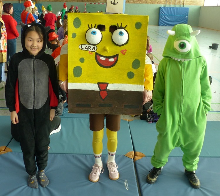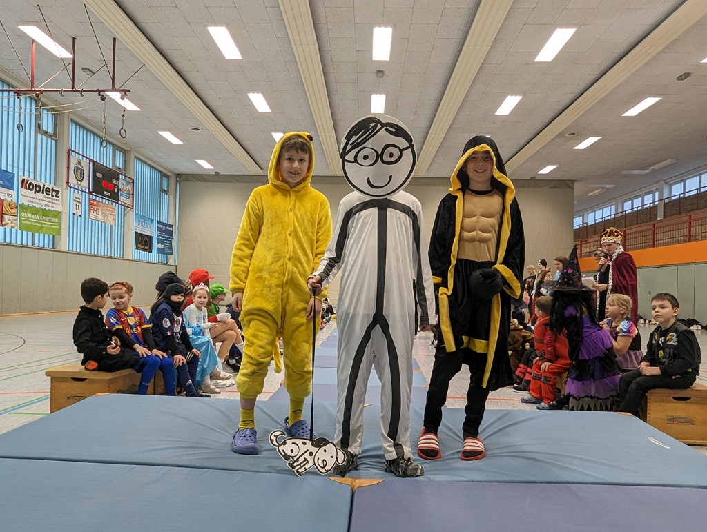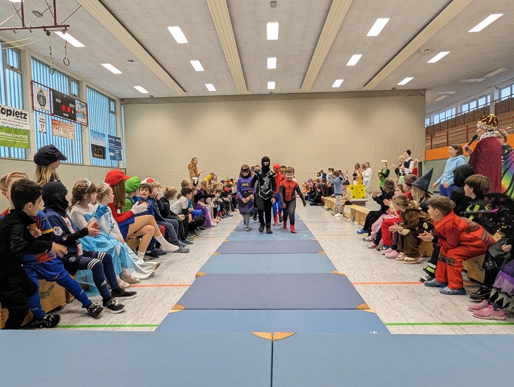 Endlich steigt die Karnevalsstimmung! Alle aus der Schule haben sich cool verkleidet. Und wir haben in der Sporthalle einen Bewegungs-parcours gemacht. So wie immer haben wir auch einen Laufsteg gemacht, auf dem alle ihre Kostüme präsentieren konnten. Das war richtig toll! Außerdem haben wir in den Klassen tolle Spiele gespielt.