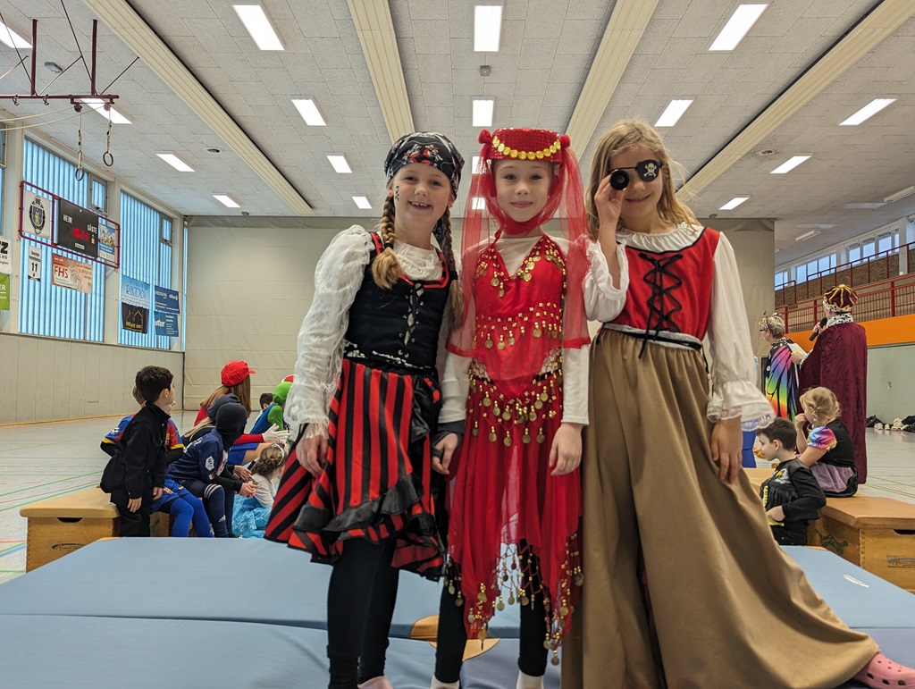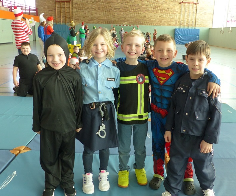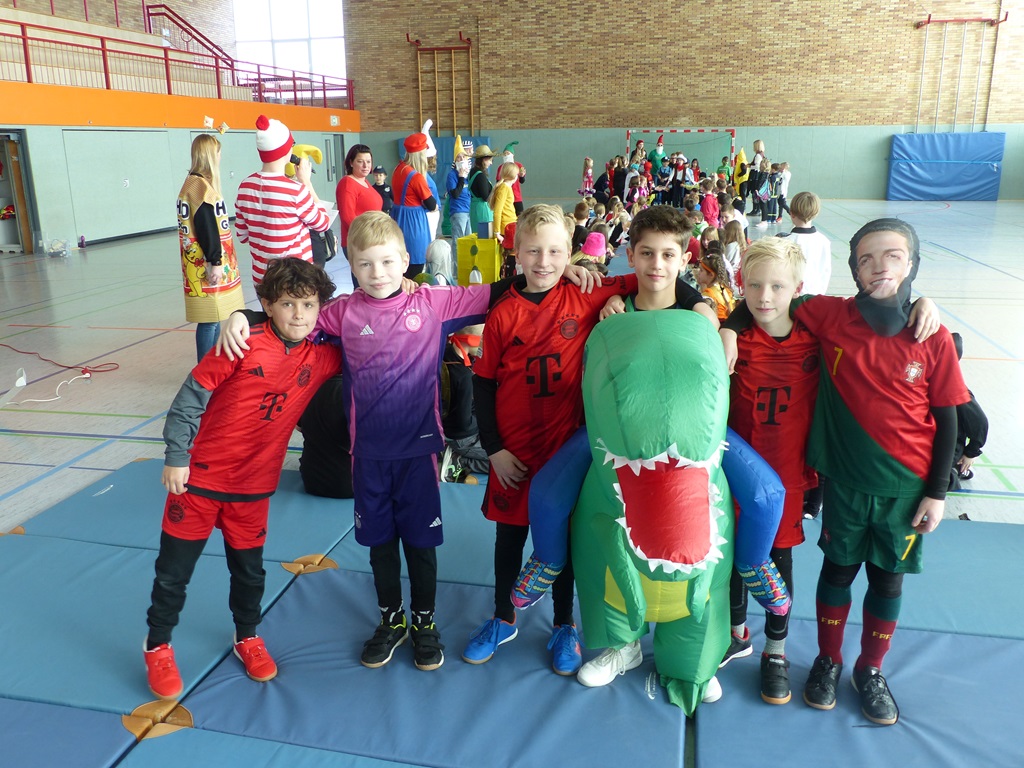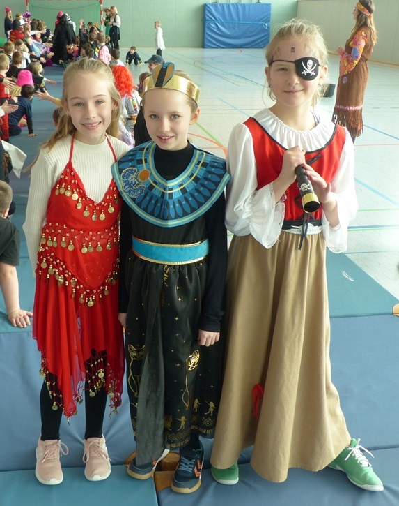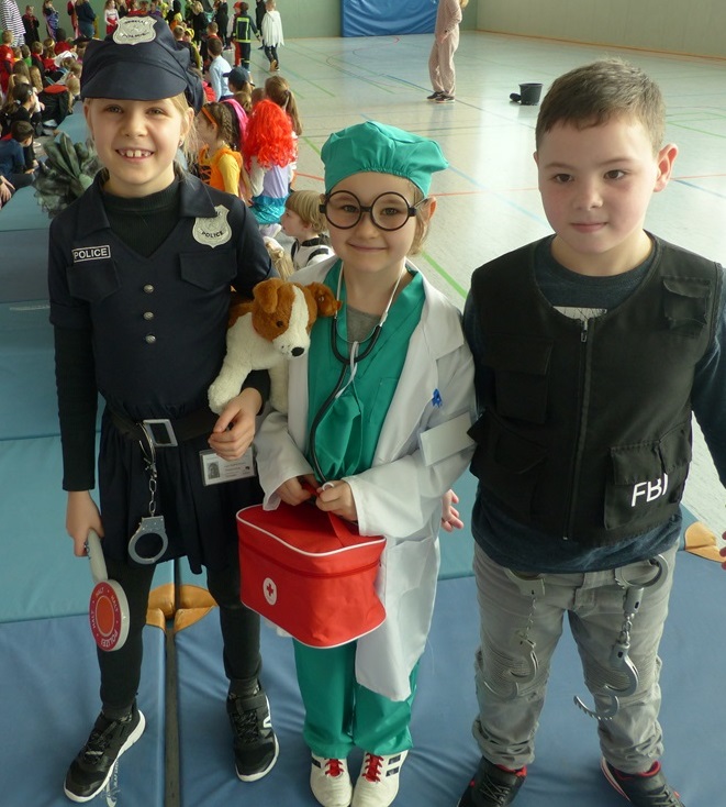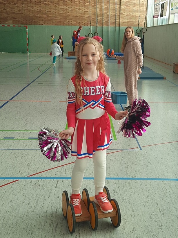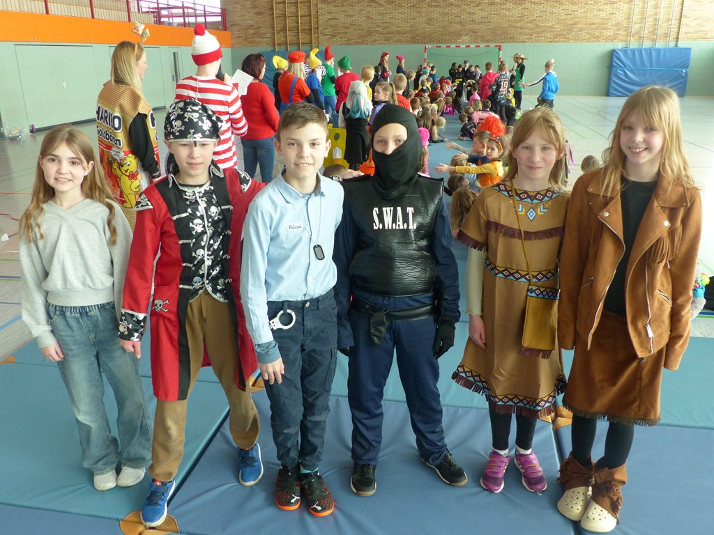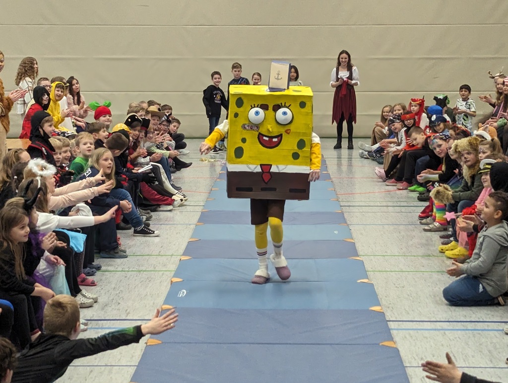 Endlich steigt die Karnevalsstimmung! Alle aus der Schule haben sich cool verkleidet. Und wir haben in der Sporthalle einen Bewegungs-parcours gemacht. So wie immer haben wir auch einen Laufsteg gemacht, auf dem alle ihre Kostüme präsentieren konnten. Das war richtig toll! Außerdem haben wir in den Klassen tolle Spiele gespielt.