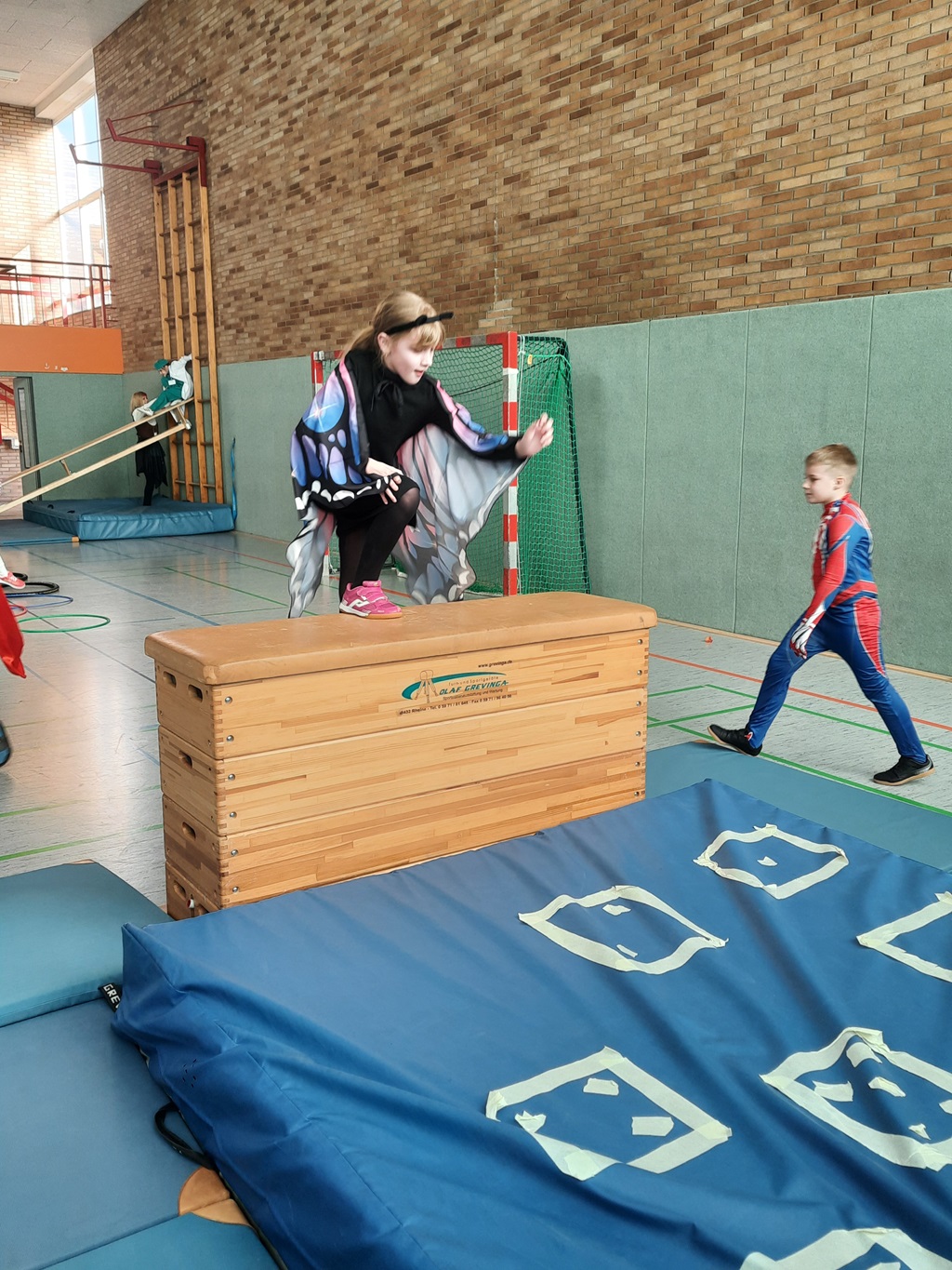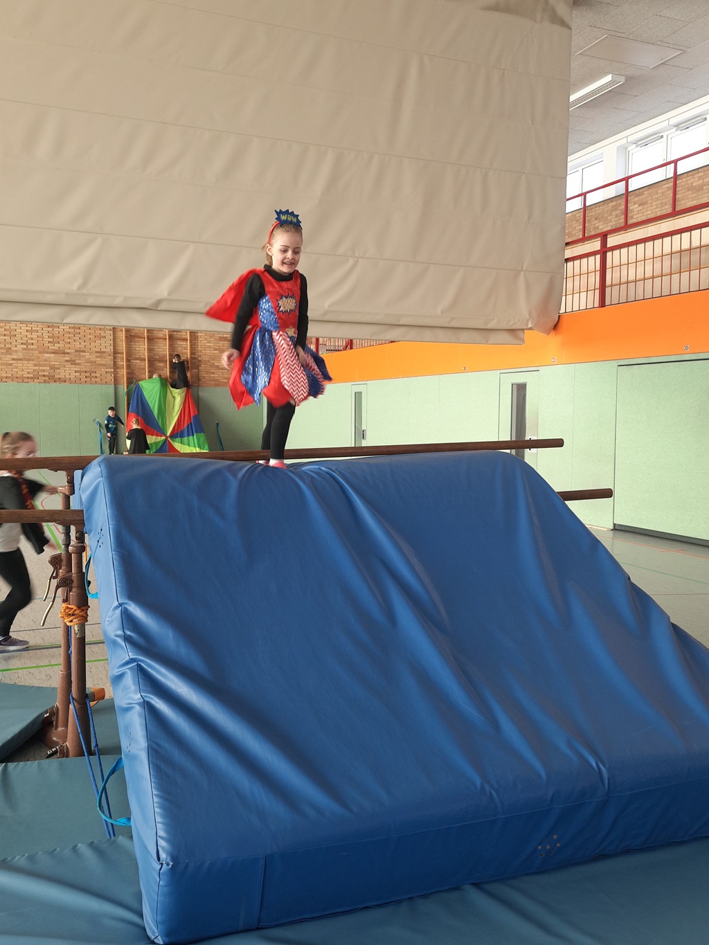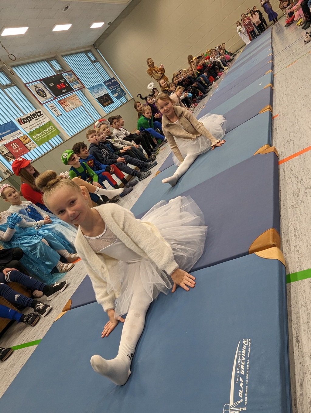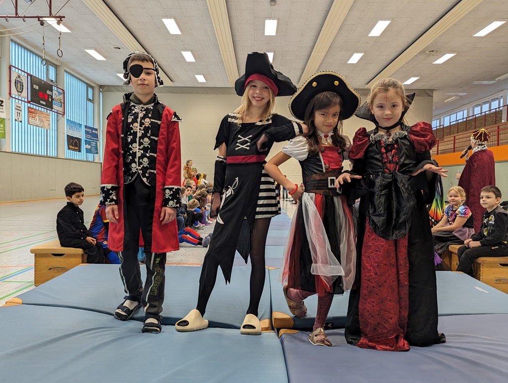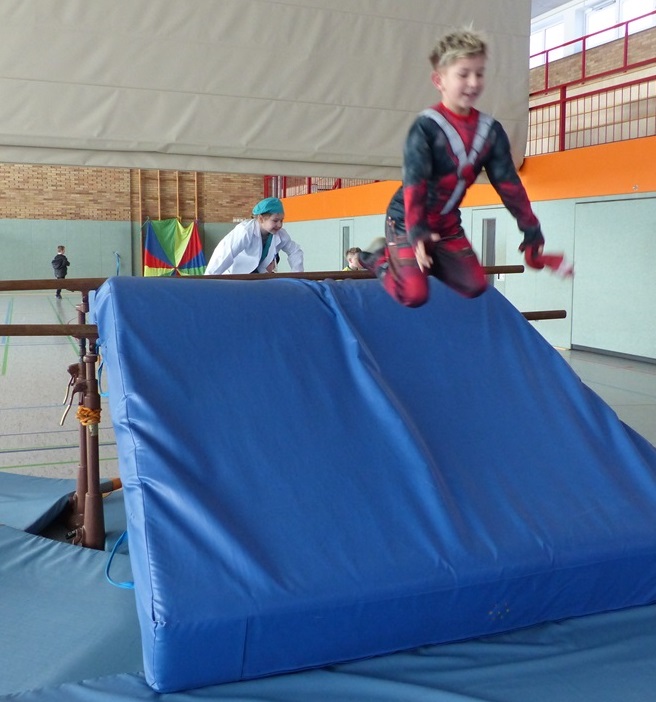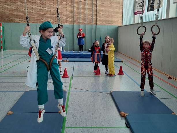 Endlich steigt die Karnevalsstimmung! Alle aus der Schule haben sich cool verkleidet. Und wir haben in der Sporthalle einen Bewegungs-parcours gemacht. So wie immer haben wir auch einen Laufsteg gemacht, auf dem alle ihre Kostüme präsentieren konnten. Das war richtig toll! Außerdem haben wir in den Klassen tolle Spiele gespielt.