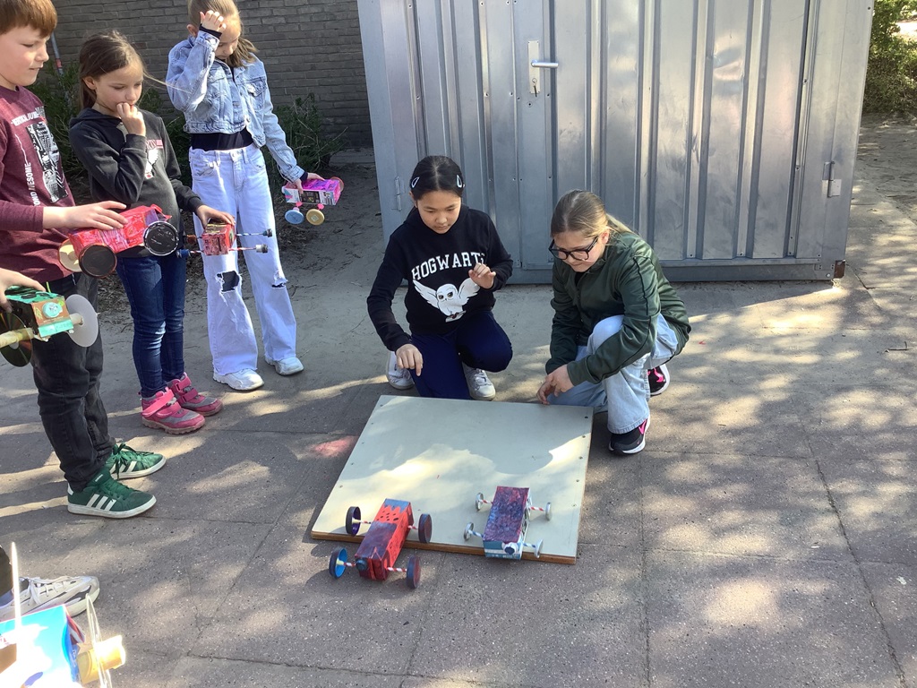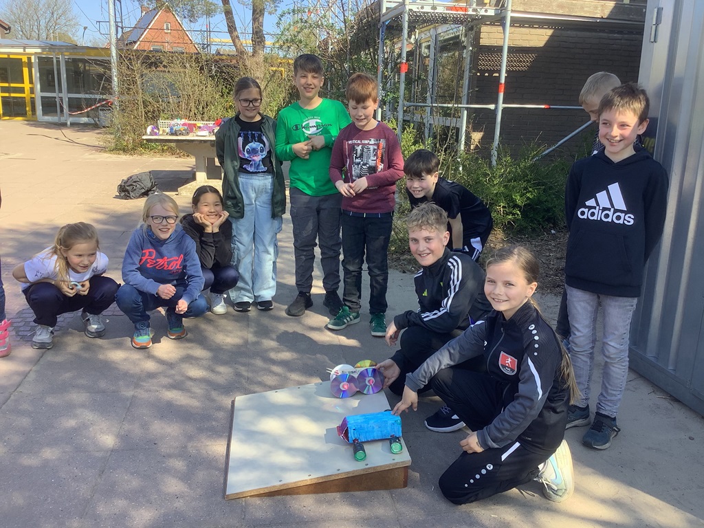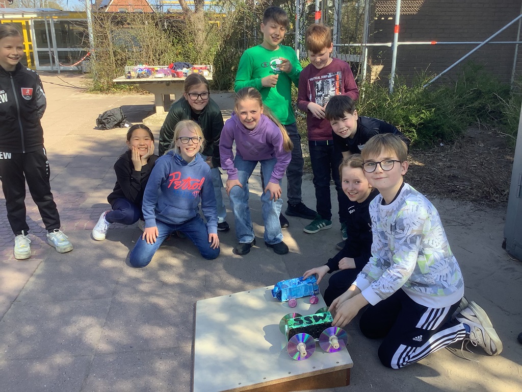 Vor den Osterferien stand im Fach Sachunterricht ein besonderes Projekt für unsere vierten Klassen an: der Bau eigener Fahrzeuge. Von zuhause wurden allerlei nützliche Materialien mitgebracht und dann in der Schule verarbeitet. Am letzten Schultag wurden die Fahrzeuge dann im Rahmen eines kleinen Rennens auf ihre Fahrtauglichkeit getestet. Das Fazit der Kinder war eindeutig: Diese Art von Unterricht darf es gerne öfter geben!