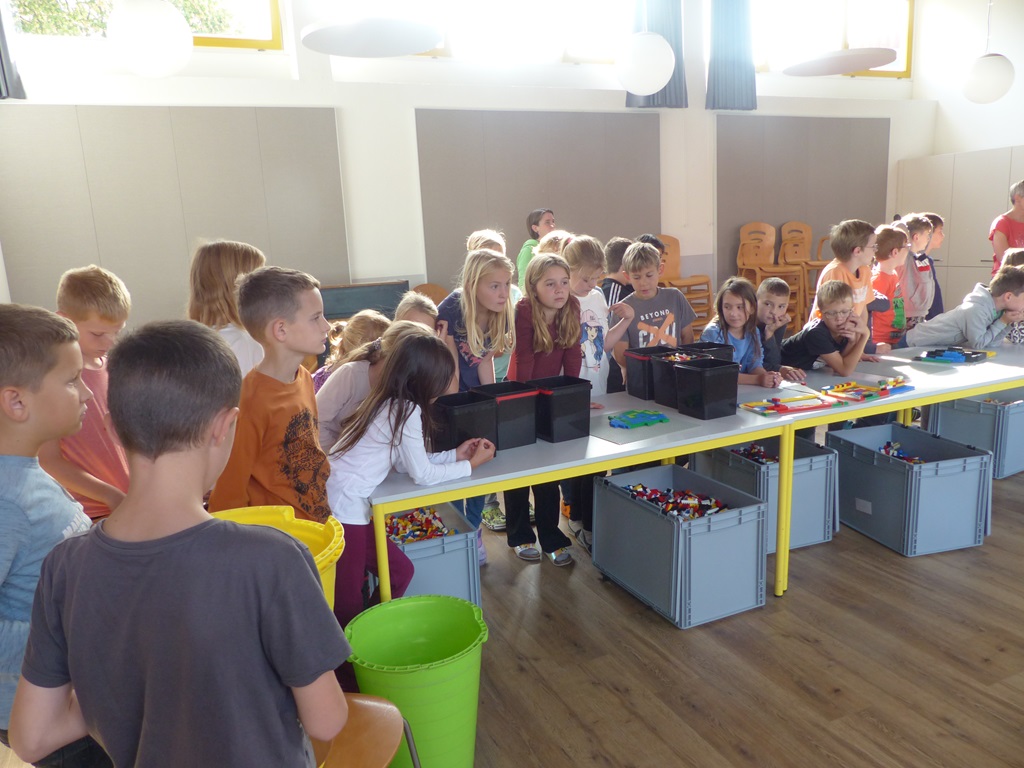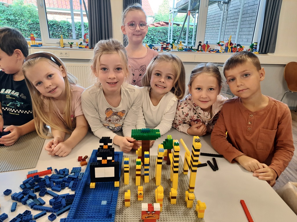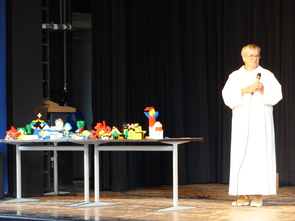 Zu Besuch war Frau Beine von der Pfarreigemeinschaft Obergrafschaft. Sie hat 150kg Legosteine mitgebracht, aus denen wir die Schöpfung nachgebaut haben.