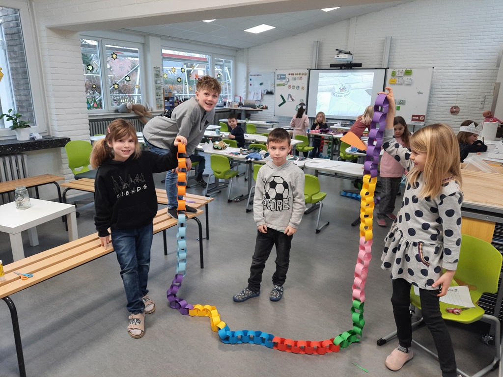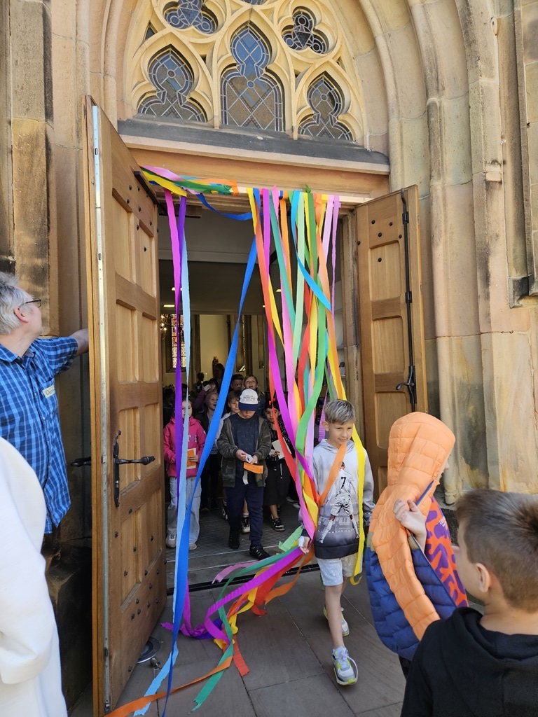 Am Freitag, den 16.5.2025, gestaltete die kath. Kirche, unter Anleitung von Barbara Beine, in Kooperation mit der katholischen Grundschule einen Projekttag zum Thema "Die Welt ist bunt - Gott sei Dank".