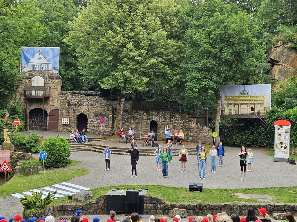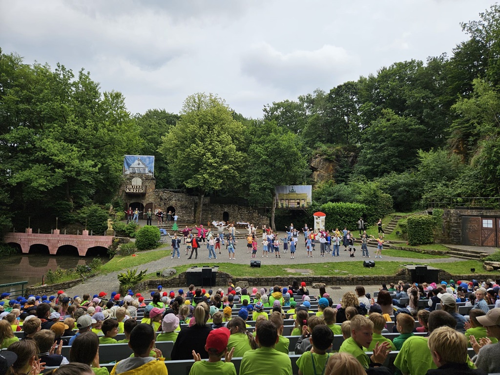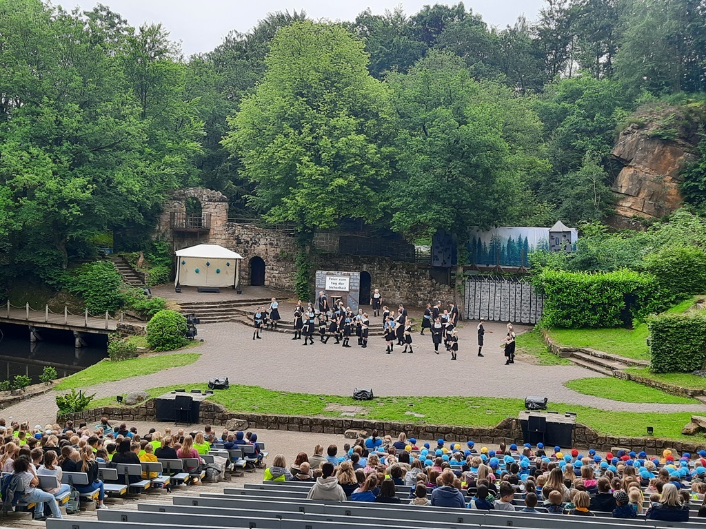 Am 04. Juni 2024 ging es mit der gesamten Schule zur Freilichtbühne nach Bad Bentheim. Zu sehen gab es eine moderne Auflage des Märchen-Klassikers "Rotkäppchen".