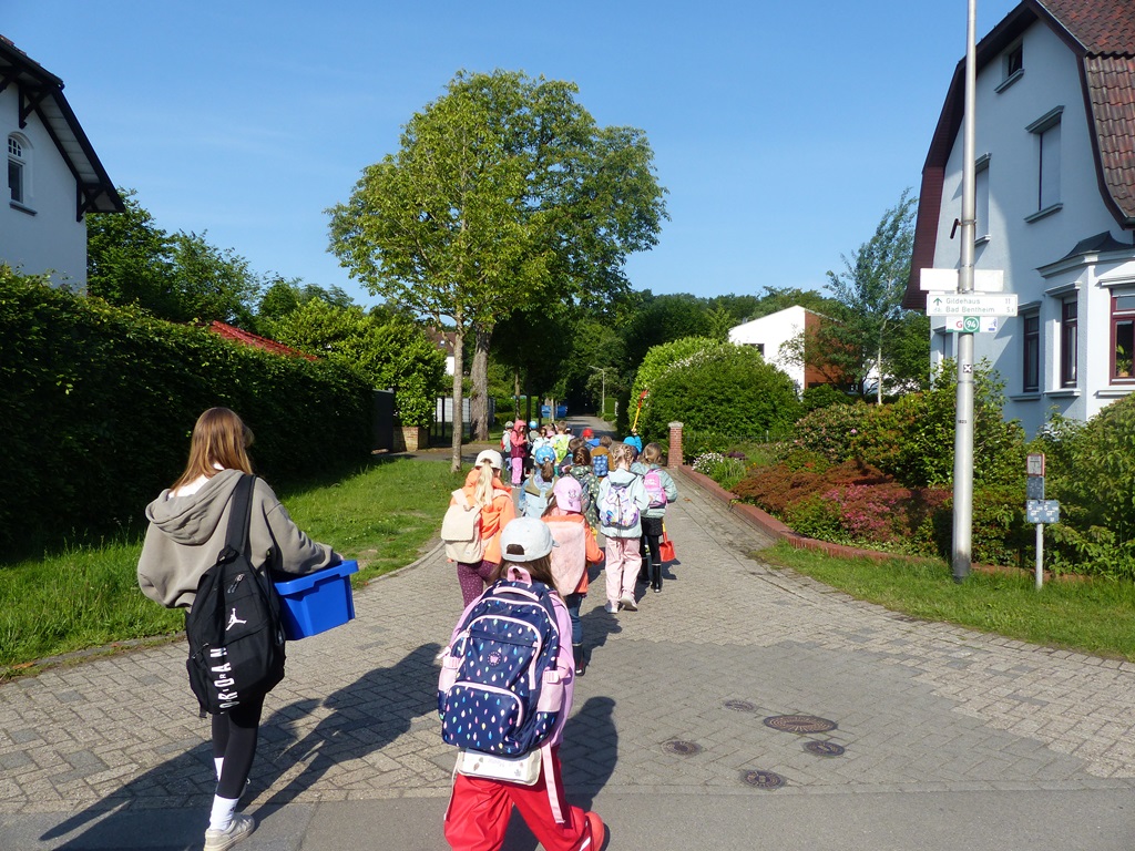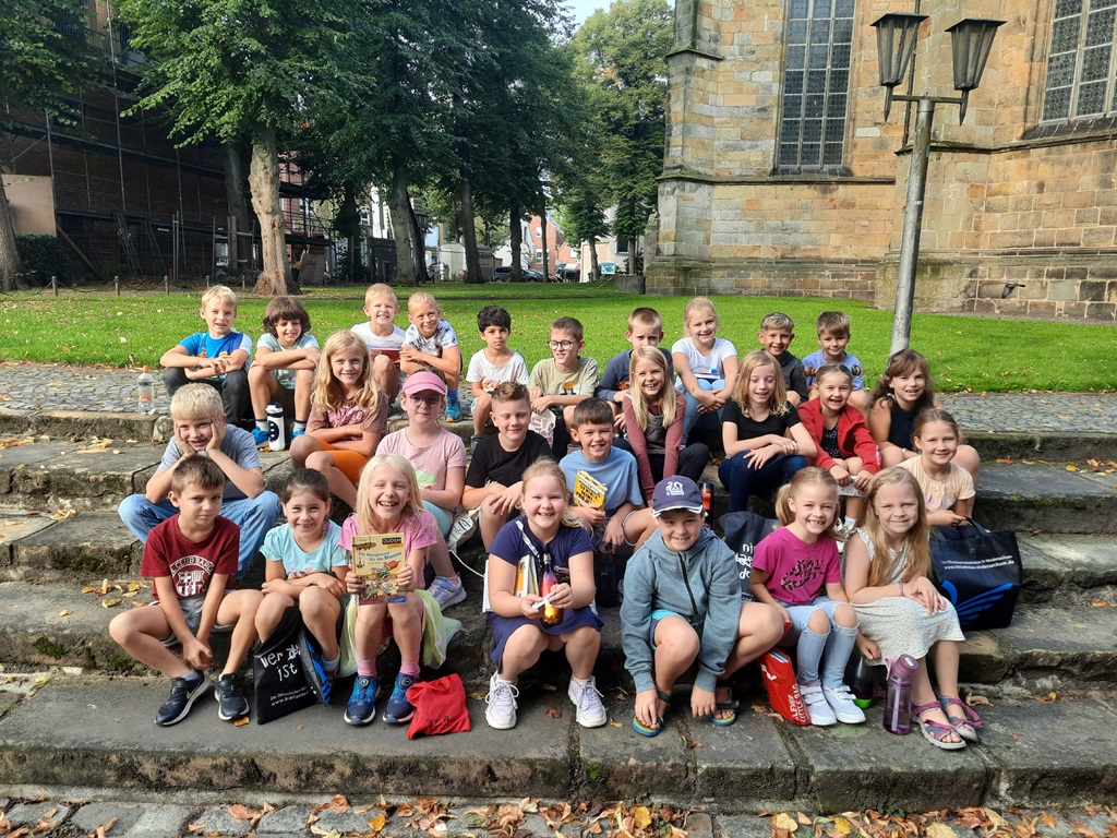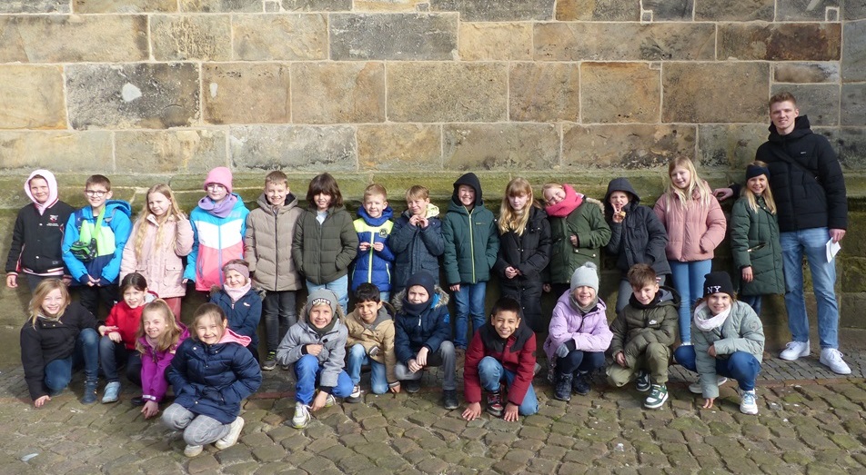 Passend zum Sachunterrichtsthema "Schüttorf und Umgebung" hat auch die 4a vor den Herbstferien die Innenstadt Schüttorfs erkundet. Dabei lernten sie so einiges Interessantes und Wissenswertes rund um ihre Heimatstadt und deren Geschichte. Der Höhepunkt für viele Schülerinnen und Schüler war die Besteigung des "Schüttorfer Riesens". Oben angekommen wurden sie mit einer tollen Aussicht über Schüttorf belohnt. An dieser Stelle noch einmal vielen Dank an Eva Nayda vom Heimatverein für die tolle Führung!