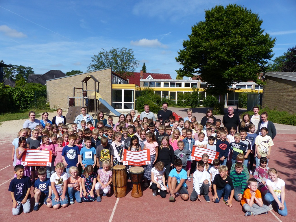 Mit viel Motivation und Durchhaltevermögen erliefen die Schülerinnen und Schüler der Katholischen Grundschule Schüttorf bei ihrem ersten Sponsorenlauf den Betrag von 7000 Euro. Über den Erlös freuen sich nun das „Centre for Talent Expression“ in Ghana, die Flüchtlingsdiakonie Schüttorf, die aktuell intensiv mit aus der Ukraine geflüchteten Menschen arbeitet, und die Katholische Kirchengemeinde Mariä Verkündigung.