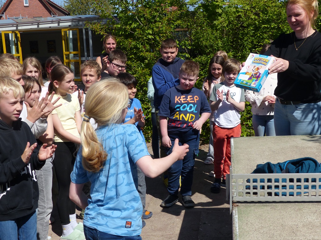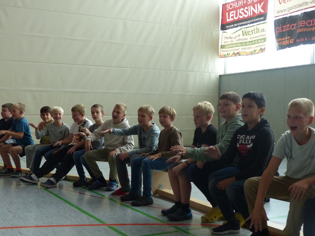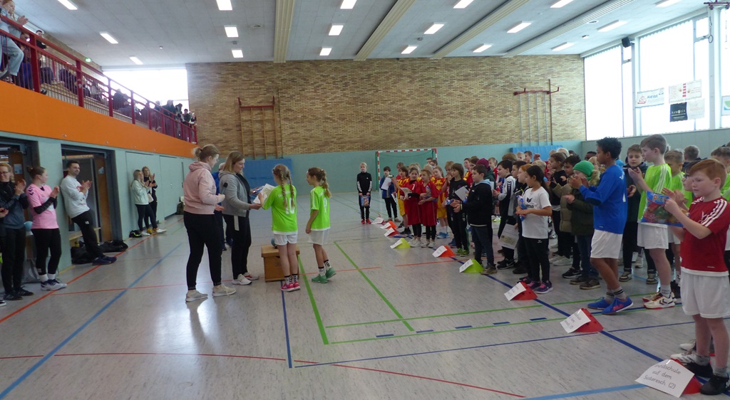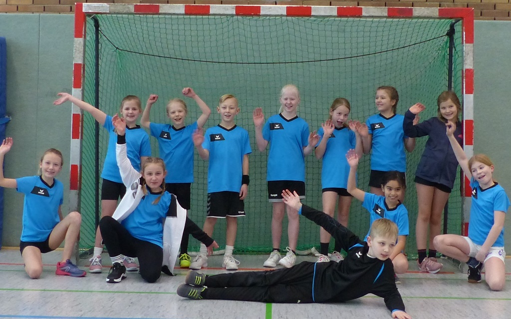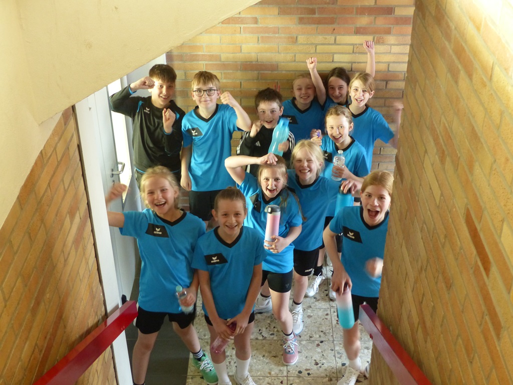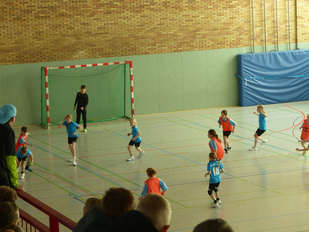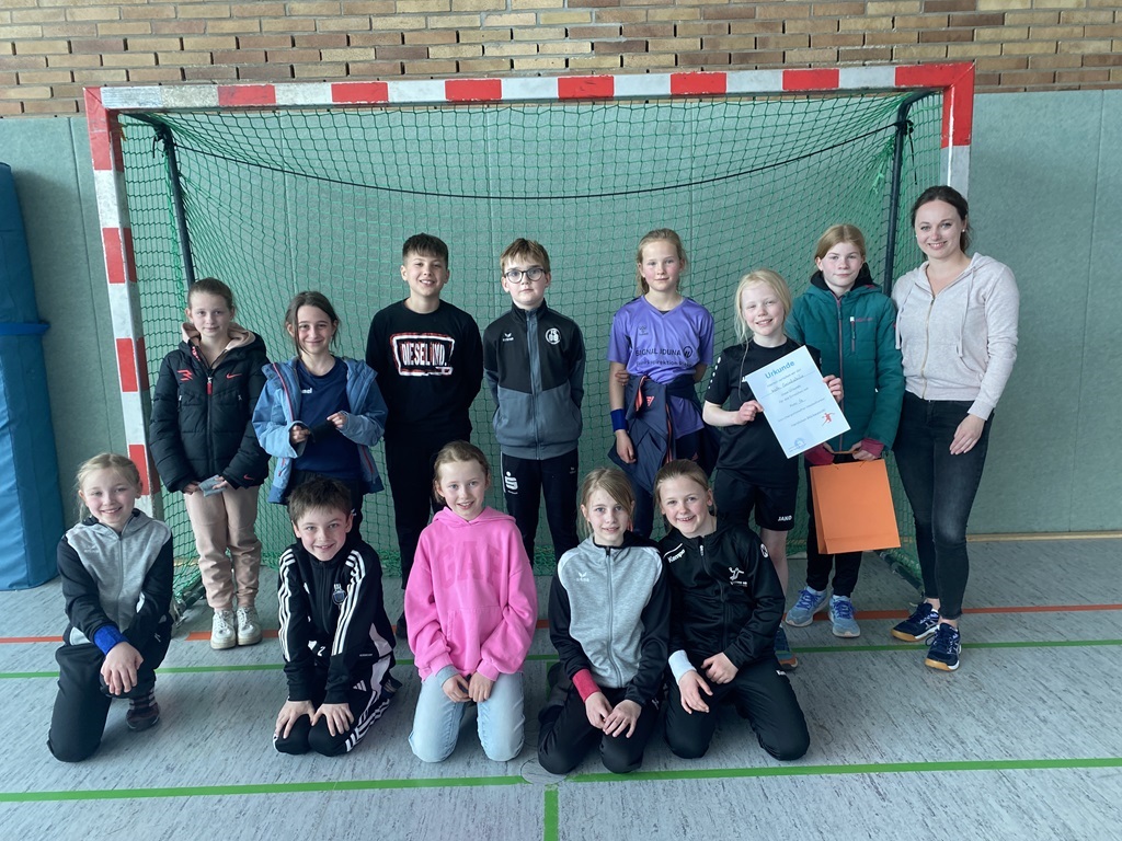 Am 02.04.2025 fand das Handballturnier der Obergrafschafter Grundschulen in der Jahnhalle in Schüttorf statt. Nachdem wir bereits in den Wochen zuvor gemeinsam trainiert hatten, starteten wir voller Vorfreude und Motivation in das Turnier. Leider verloren wir das erste Spiel gegen den Gastgeber der Evangelischen Grundschule recht deutlich. Allerdings konnten wir die nächsten beiden Spiele gewinnen, sodass wir tatsächlich als Gruppenzweiter das Halbfinale erreichten. Dort mussten wir uns jedoch dem späteren Turniersieger der GS Quendorf geschlagen geben. Am Ende erreichten wir einen tollen 4. Platz! An dieser Stelle ein herzliches Dankeschön an die Unterstützung vor Ort und für die Organisation des Turniers durch die Evangelische Grundschule!