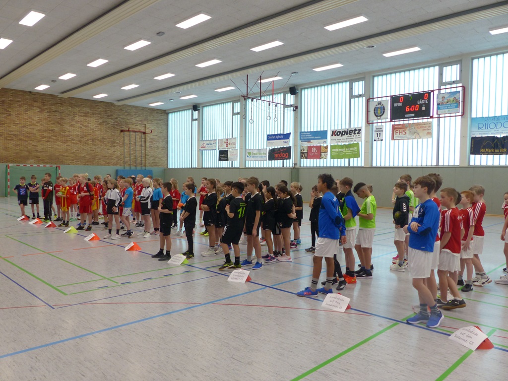 Am 29.02.2024 war es soweit: Das Handballturnier der Obergrafschafter Grundschulen stand an. Voller Motivation und Vorfreude machte sich unser Team aus Schülerinnen und Schülern der dritten und vierten Klassen am Donnerstagmorgen auf den kurzen Weg in die Jahnhalle. Da die Katholische Grundschule in diesem Jahr der Ausrichter des Turniers war, wurde das Team während des gesamten Turniers durch verschiedene Klassen der KGS lautstark angefeuert. Auch wenn wir in jedem Spiel bis zur letzten Sekunde gekämpft haben, blieb der sportliche Erfolg leider aus. Trotzdem waren sich am Ende alle Spielerinnen und Spieler der Mannschaft einig: Wir haben zwar nicht gewonnen, aber es hat trotzdem Spaß gemacht! Ganz nach dem olympischen Motto: Dabei sein ist alles!