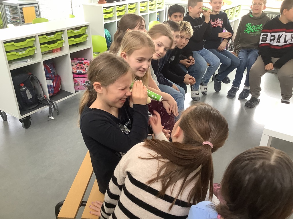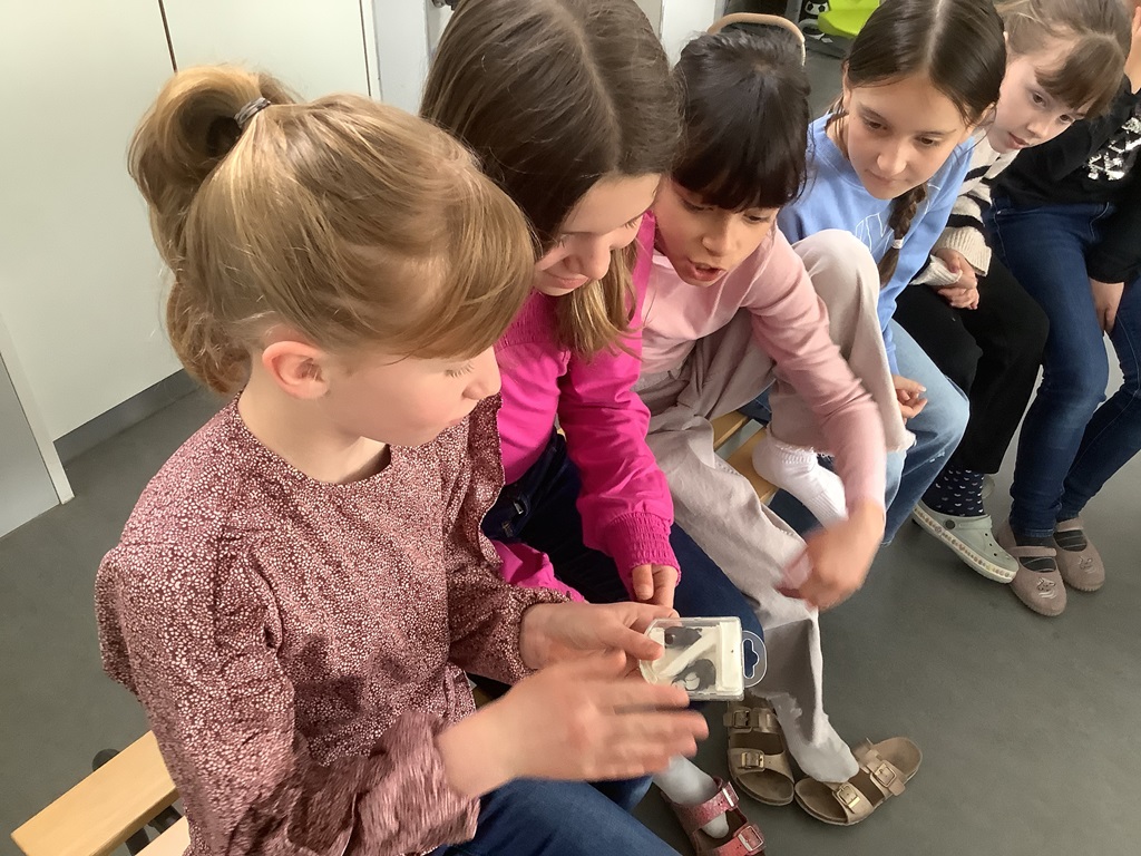 Insekten sind wichtig! – Unter diesem Motto stand das Projekt „Biene, Ameise und Co“ der Deutsche Umwelt-Aktion e.V. So lernten die Viertklässlerinnen und Viertklässler, welche Tiere überhaupt zur Gruppe der Insekten gehören und woran man diese erkennen kann (nämlich an den sechs Beinen!). Mithilfe eines Teleidoskops konnten die Kinder zudem die Welt aus der Sicht einer Fliege sehen. Im Anschluss erfolgte ein Quiz mit vielen Fragen rund um das Thema „Insekten“. Am Ende durften die Kinder mit verschiedenen insektenfreundlichen Samen und Erde Samenbomben herstellen. Diese konnten sie mit nach Hause nehmen.