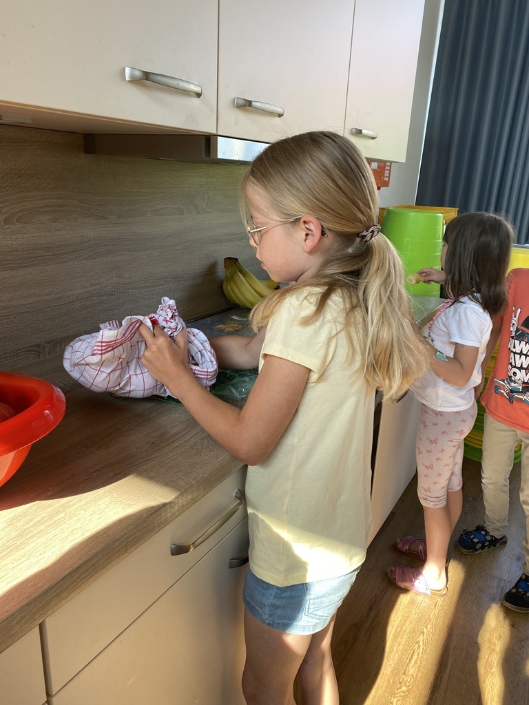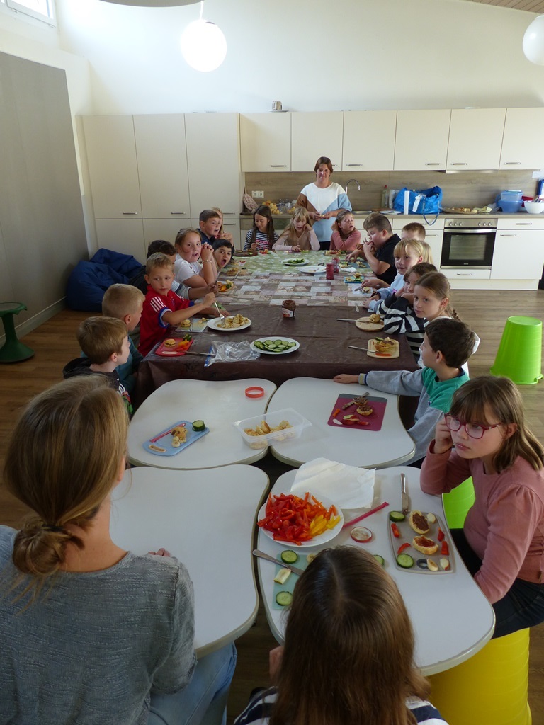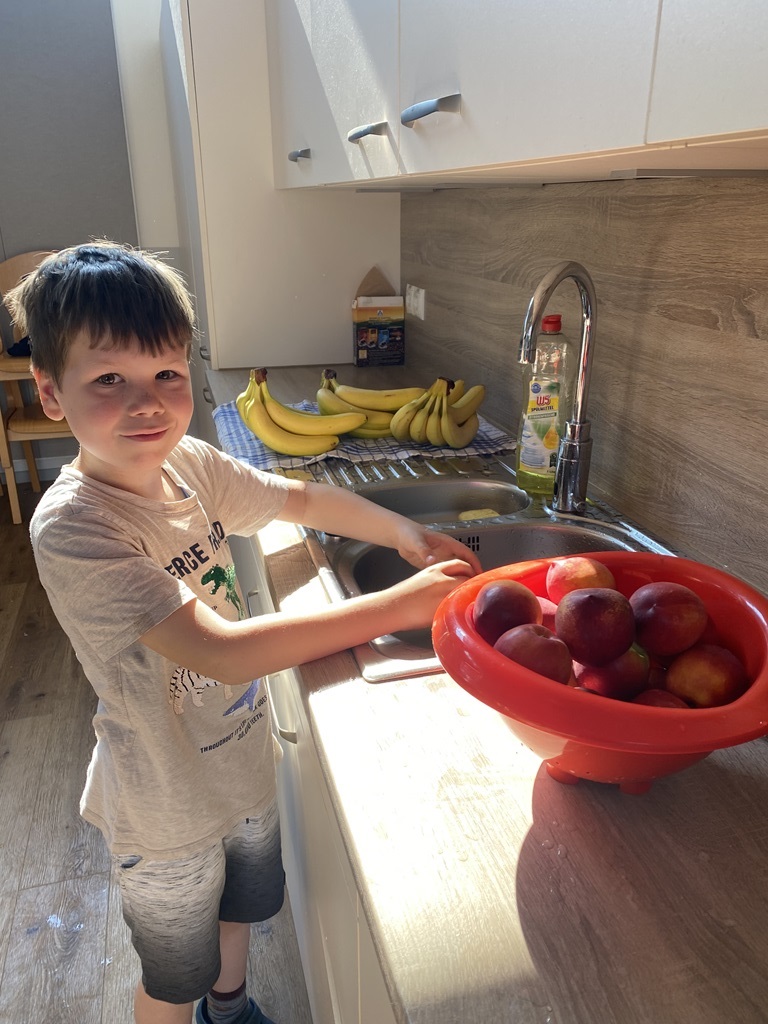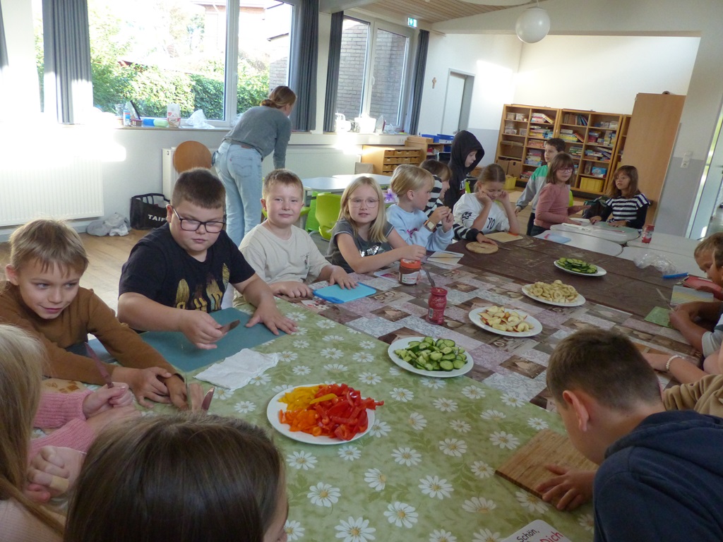 Freitags schneiden einige Kinder mit unserer Schulsozialarbeiterin Johanna Glückhardt Obst für die gesamte Schule. Zur ersten großen Pause wird das Obst dann in die Klassen gebracht und kann gegessen werden. Ein absolutes Highlight zum Start ins Wochenende.