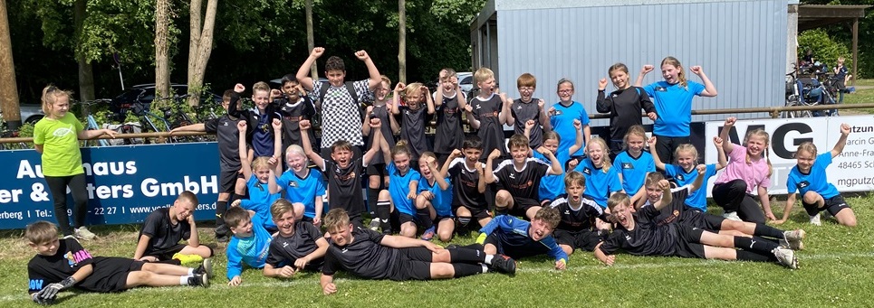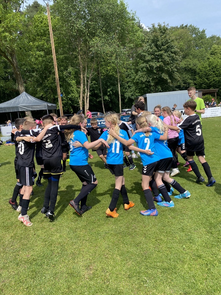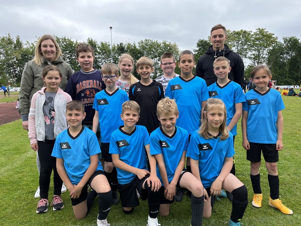 Am 13.06.25 nahm unsere katholische Grundschule mit zwei Jungen- und einer Mädchenmannschaft am Fußballturnier der Obergrafschafter Grundschulen teil. Alle vierten Klassen waren mit vor Ort, unterstützt von einigen Spielerinnen und Spielern aus den dritten Klassen – eine starke Schulvertretung! Die Mädchenmannschaft erreichte einen großartigen 3. Platz, erzielte 7 Tore und ließ nur ein Gegentor im Halbfinale zu. Auch die Jungenmannschaften zeigten vollen Einsatz: Team 1 belegte Platz 4, Team 2 Platz 6 von insgesamt zehn Teams. Bei hochsommerlichen Temperaturen sorgten Wassereimer zur Abkühlung für Spaß und Erfrischung. Besonders hervorzuheben war die großartige Stimmung: Mitschülerinnen und Mitschüler sowie die Teams selbst feuerten sich gegenseitig mit viel Begeisterung an. Ein herzliches Dankeschön gilt Frau Rüggen, die uns engagiert am Spielfeldrand unterstützt hat, sowie allen Eltern und Erziehungsberechtigten, die gekommen sind, um uns anzufeuern! Wir sind stolz auf unsere Kinder – ihr habt unsere Schule mit Teamgeist, Fairness und Freude am Sport hervorragend vertreten!