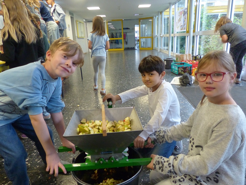 Aus dem praktischen Getränkekarton, richtig? Dass Apfelsaft auch selbst hergestellt werden kann, konnten die Schülerinnen und Schüler der KGS auch in diesem Jahr wieder selber ausprobieren. Angeleitet von Clemens Vollmer wuschen, zerkleinerten und pressten die Kinder mit viel Freude die zahlreichen gespendeten Äpfel. Auch wenn der Arbeitsaufwand groß war; so ein Schluck selbst gepresster Apfelsaft schmeckt am Ende einfach köstlich.