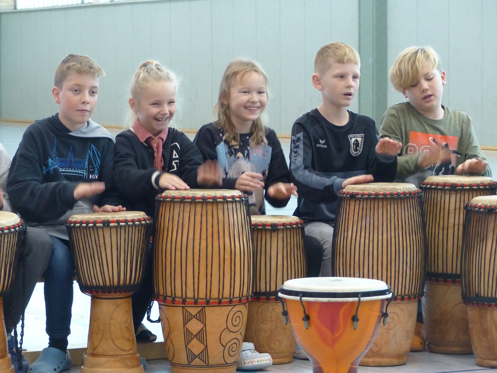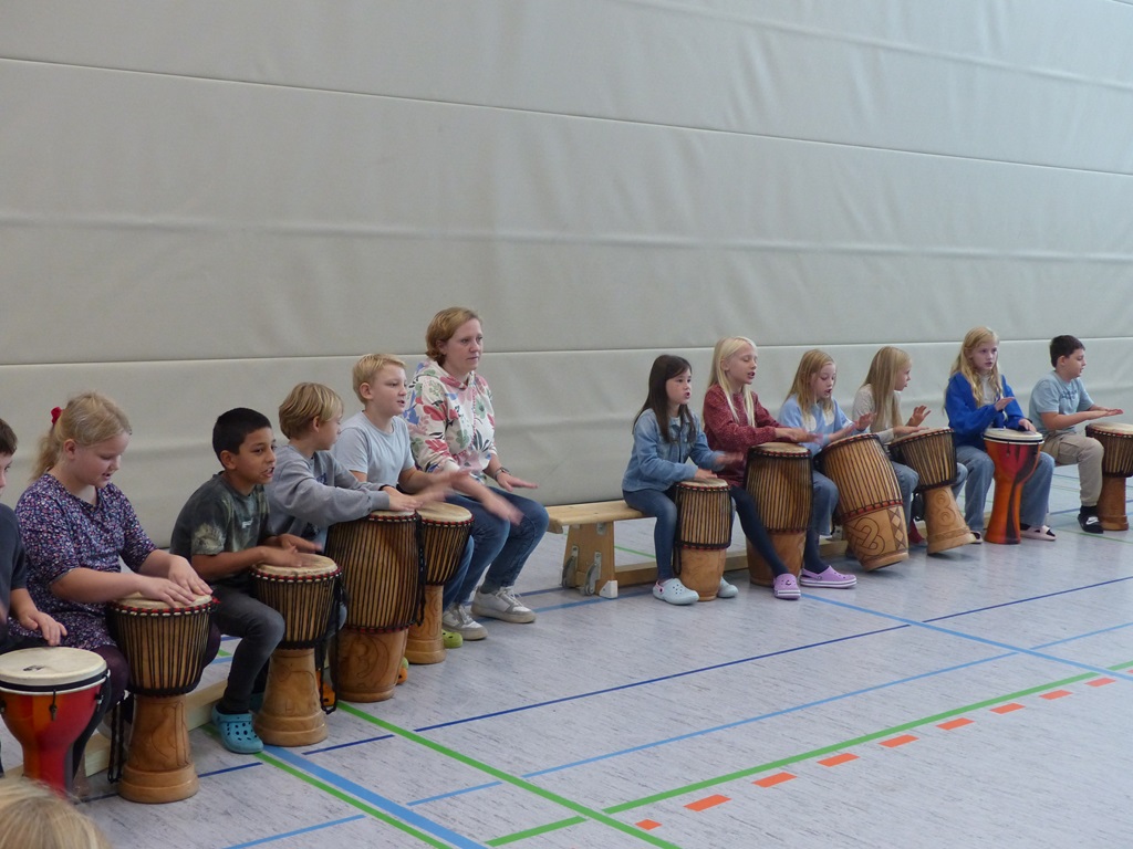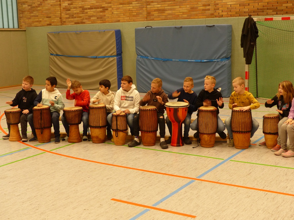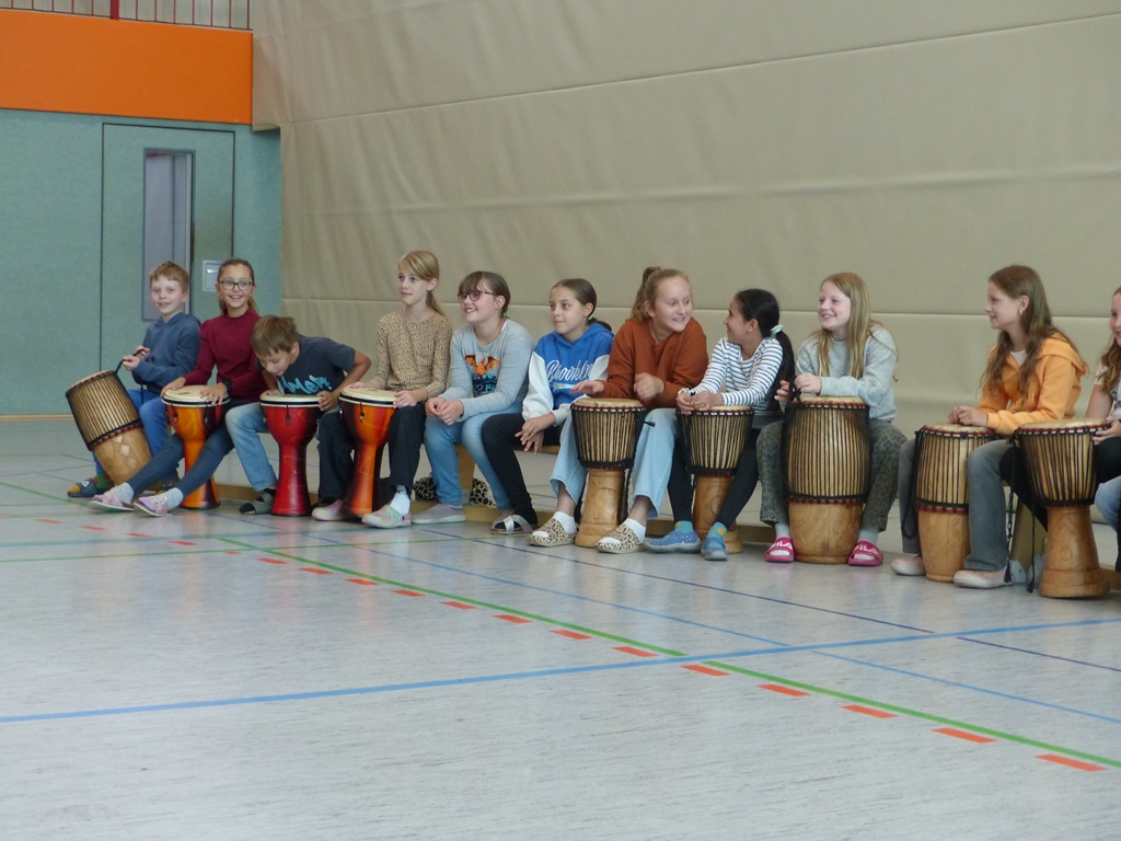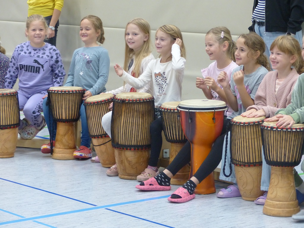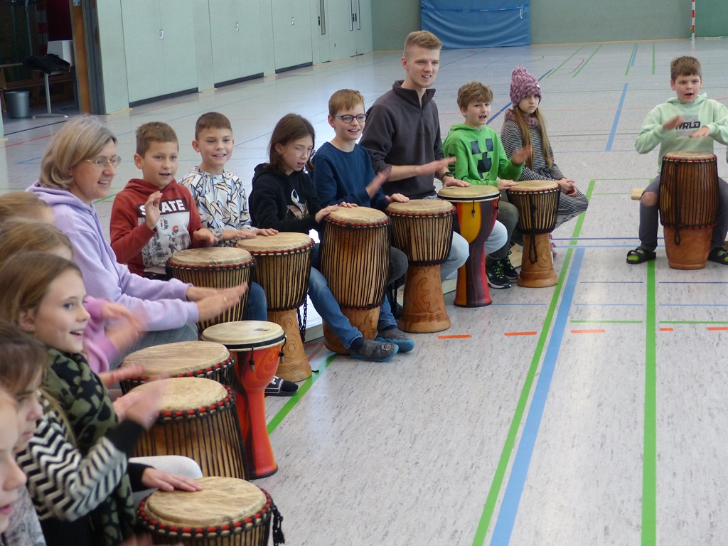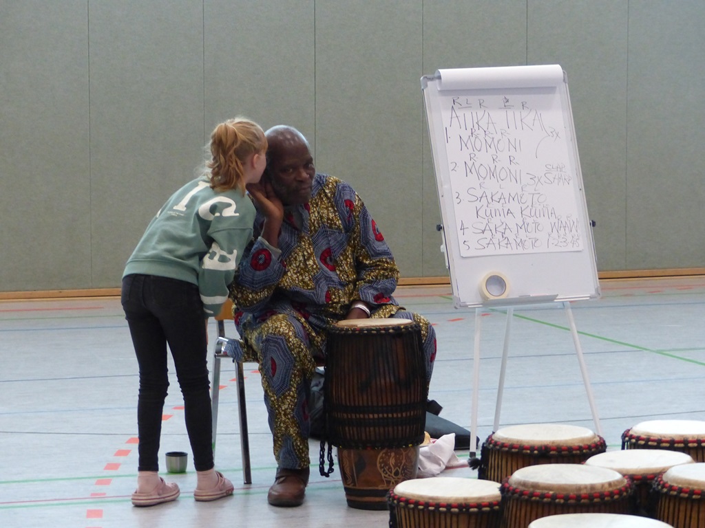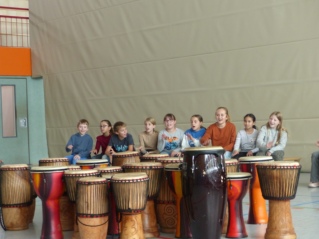 Auch in diesem Jahr konnten die Schülerinnen und Schüler wieder gemeinsam mit Morphius und Michael trommeln. Im Mittelpunkt standen feurige und mitreißende Rhythmen, afrikanisches Lebensgefühl und vor allem viel Freude und Begeisterung für das gemeinsame Musizieren.