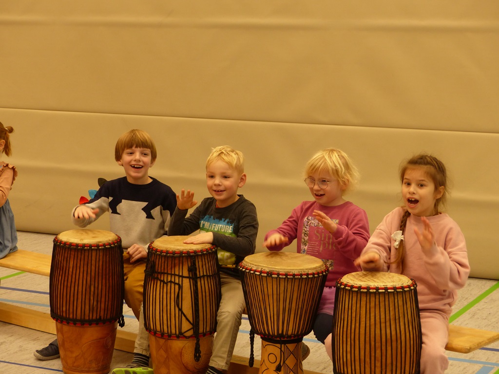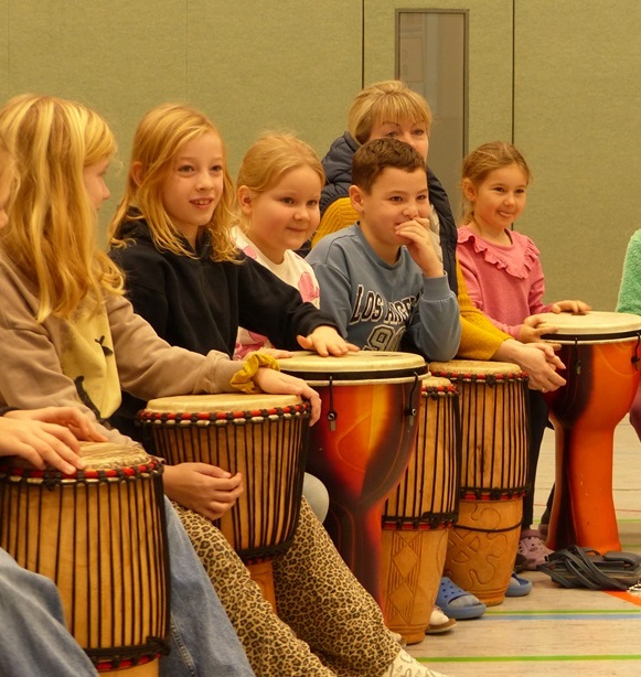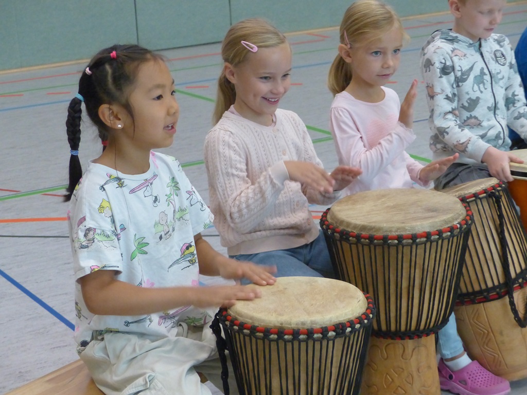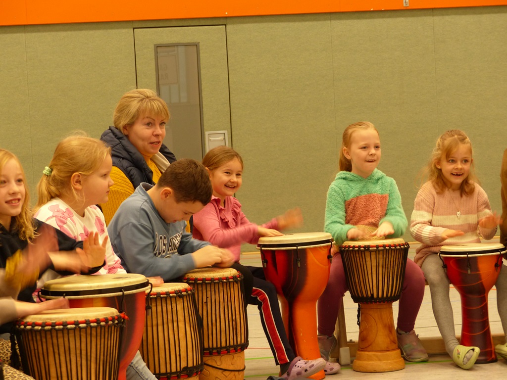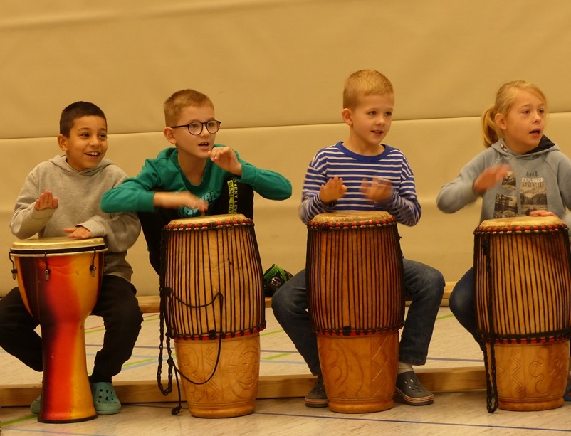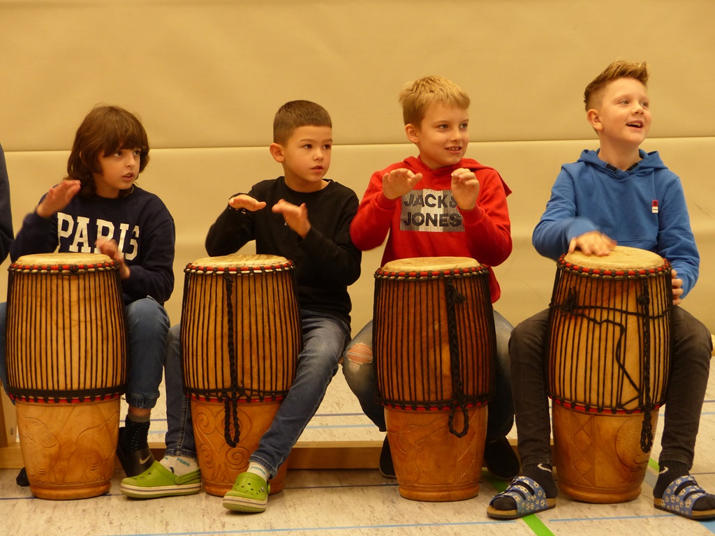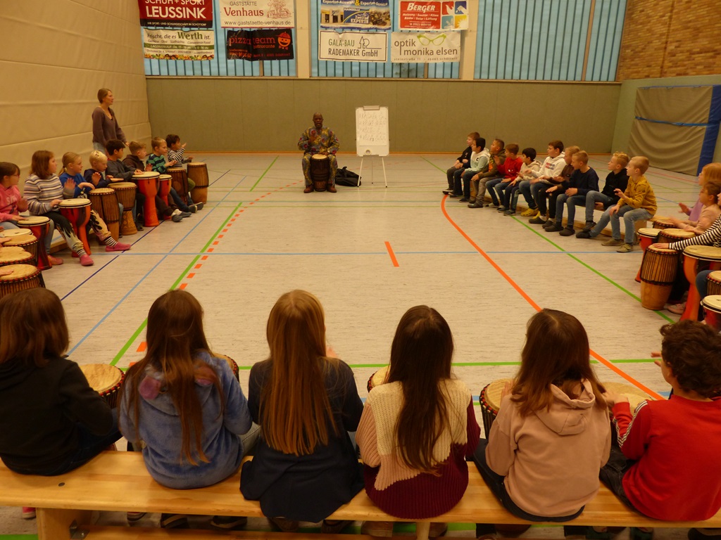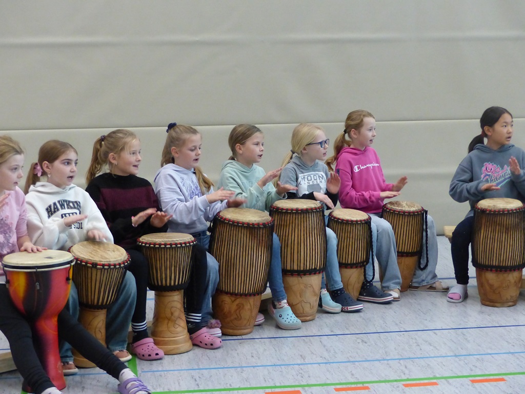 Auch in diesem Jahr konnten die Schülerinnen und Schüler wieder gemeinsam mit Morphius und Michael trommeln. Im Mittelpunkt standen feurige und mitreißende Rhythmen, afrikanisches Lebensgefühl und vor allem viel Freude und Begeisterung für das gemeinsame Musizieren.