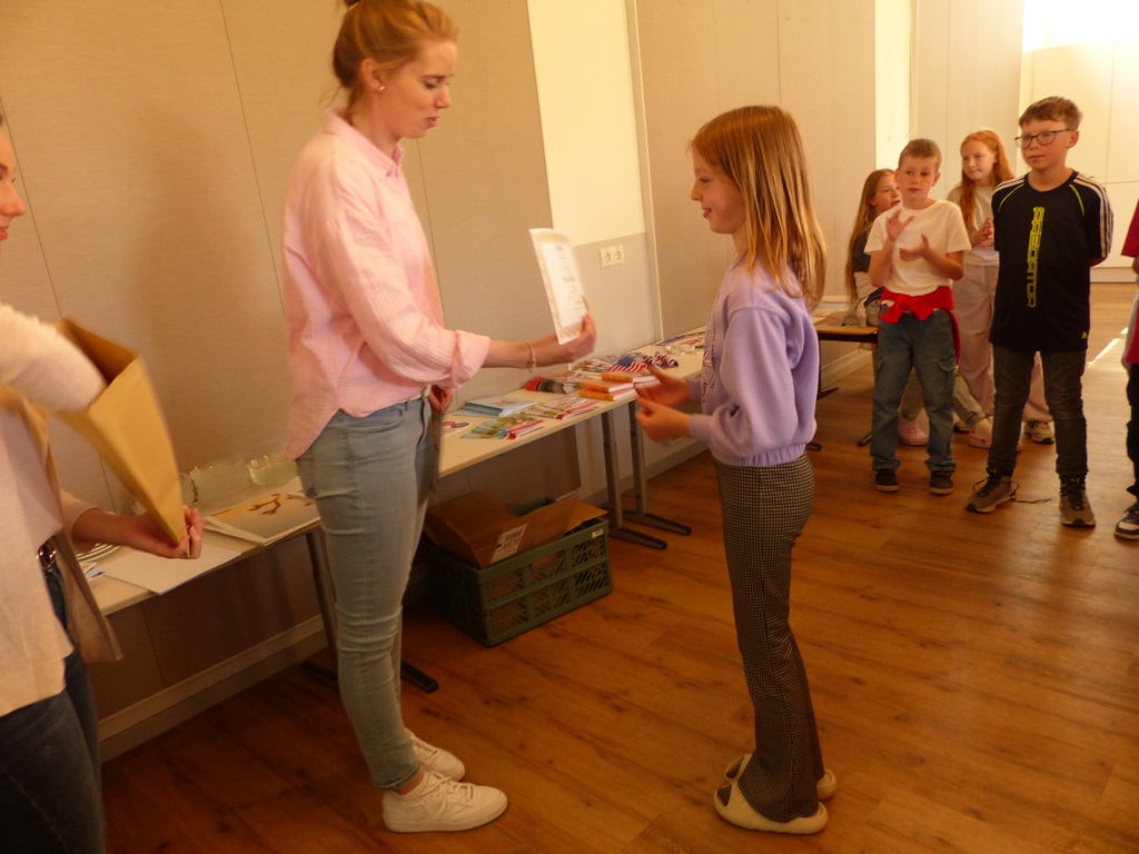 Im Juni fand dann endlich die große Siegerehrung statt. Alle Teilnehmer erhielten eine Urkunde sowie ein kleines Geschenk mit Bezug zur englischen Sprache. Wie auch bereits im Vorjahr wurde Elvira Rempening Jahrgangsbeste der vierten Klassen. Den ersten Platz in den dritten Klassen sicherte sich Helena Kasten mit einem super Ergebnis von 296.25 Punkten. Damit erreichte Helena nicht nur das beste Ergebnis der KGS, sondern gehört niedersachsenweit auch zu den 20 besten Schülern! Wir gratulieren allen Teilnehmern ganz herzlich und freuen uns schon auf die nächste Big Challenge im kommenden April!
