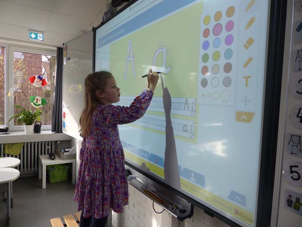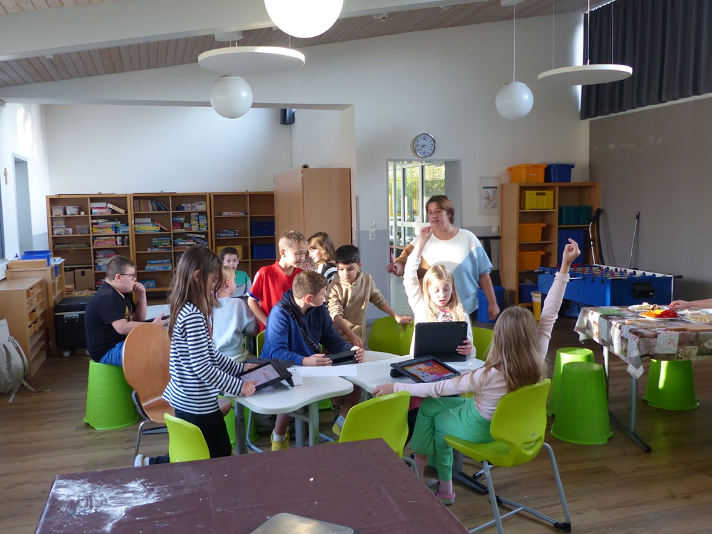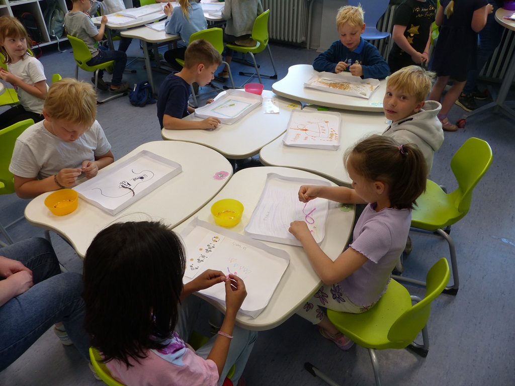 Die neugierigen Kinder konnten Experimente durchführen, Musikinstrumente ausprobieren, die Arbeit mit den Schul-iPads austesten oder kleine Basteleien und Buttons anfertigen. Ebenso wurden erste Buchstaben an die digitalen Tafeln geschrieben und Spiele zum Trainieren der Wahrnehmung gespielt.