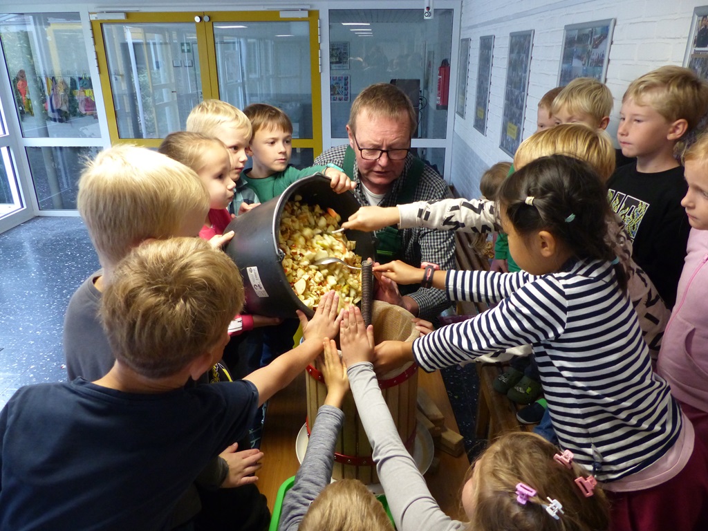 Vielen Dank an Herrn Vollmer für den interessanten Vormittag und an die Eltern für die zahlreichen Apfelspenden.
