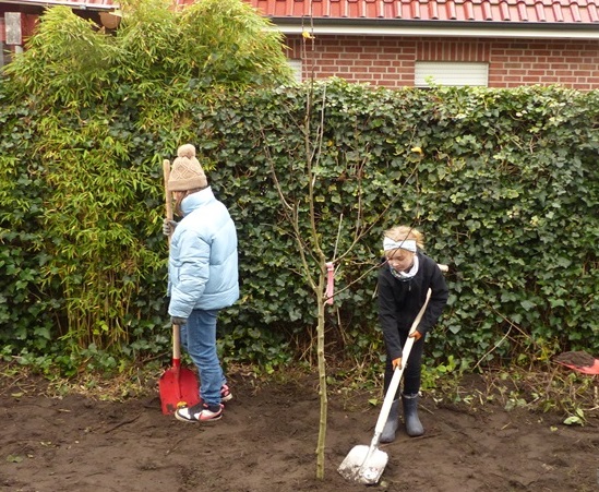 Unter der Anleitung von Herrn Rademaker und mit vielen fleißigen Helfern haben wir gemeinsam Apfelbäume auf unserem Schulgelände gepflanzt. Wir freuen uns schon auf die erste Apfelernte und bedanken uns bei allen Beteiligten.